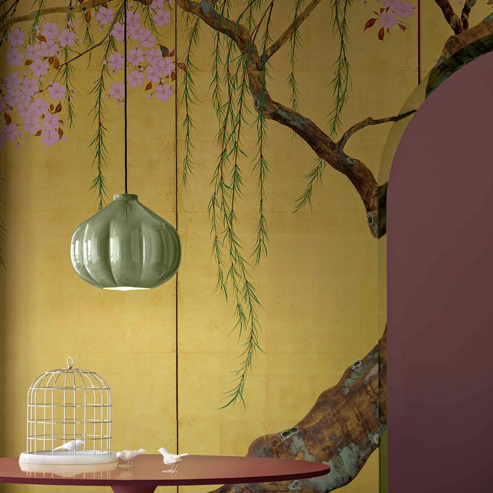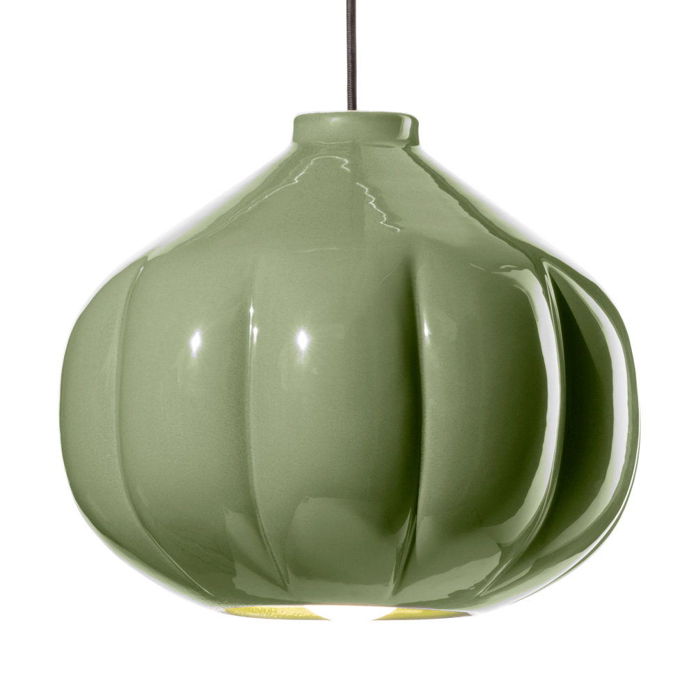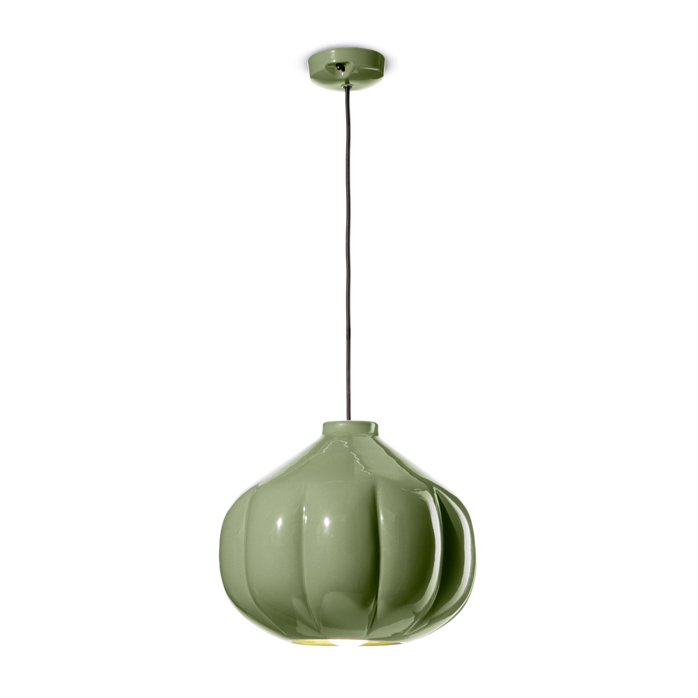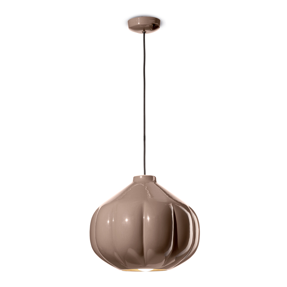 Denna pendellampa är ett mästerverk av modern design som talar språket av viskad elegans. Dess keramiska kropp framkallar en känsla av komfort och diskret lyx. Formen, som påminner om ömtåligt slutna blomblad, designades inte bara för att fånga ögat utan också för att skapa diffus och omslutande belysning som förhöjer varje hörn av rummet.