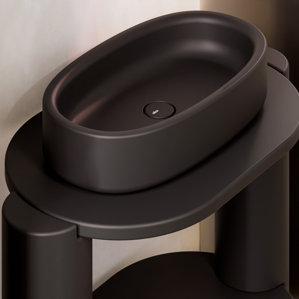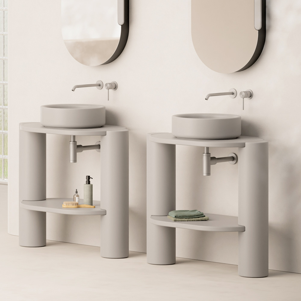 En inredningsaccessoar som kombinerar moderna linjer och mjuka geometrier , designad för dig som söker ett elegant, praktiskt och utöver det vanliga badrum.