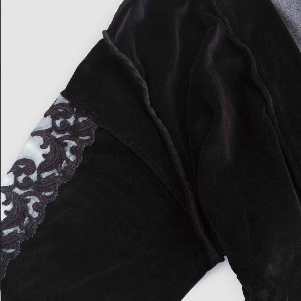 Svart chenille-mantel eller kimono med Farnese-spets, elegans tillverkad i Italien.