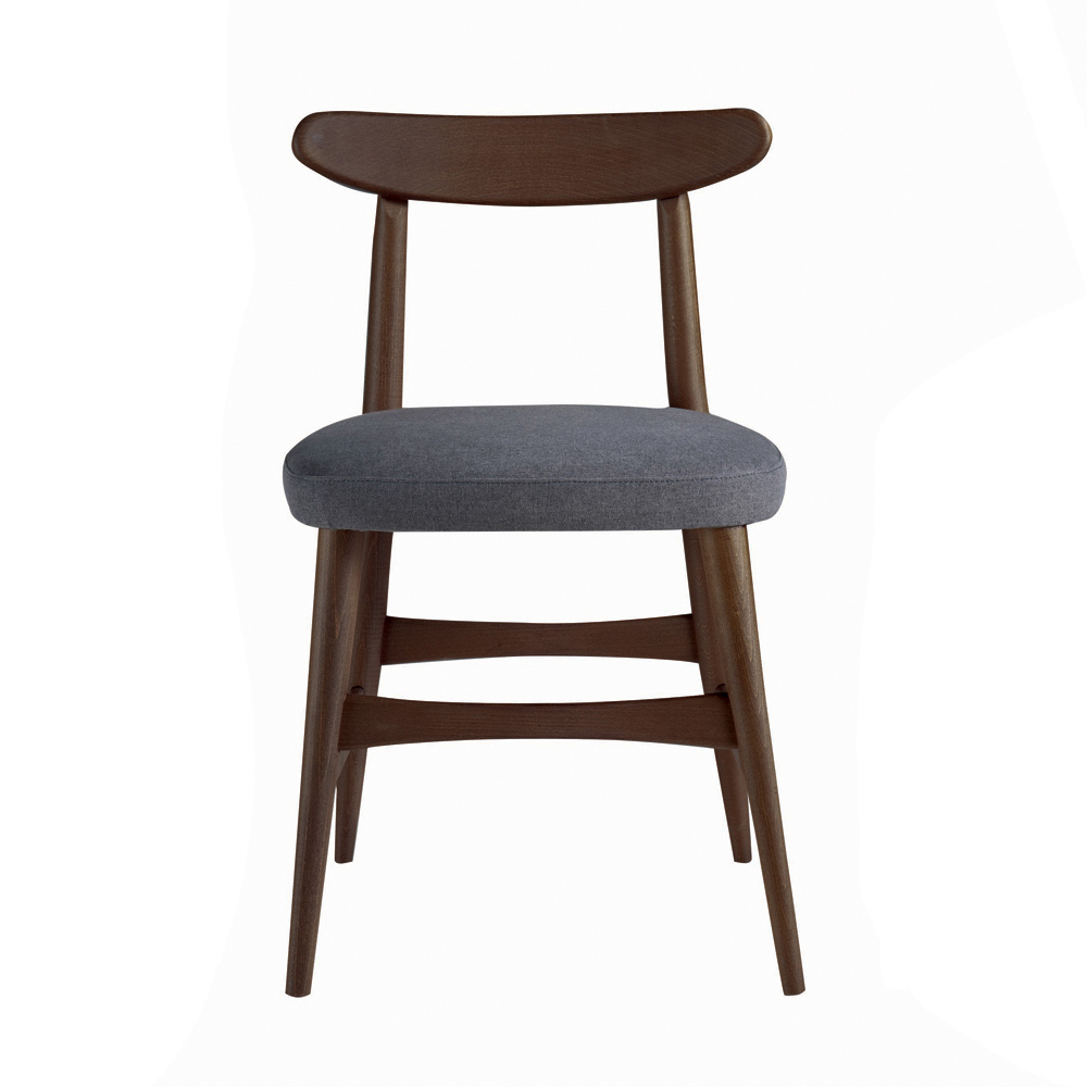 Matsalsstol med massiv askstruktur med canaletto-finish, ryggstöd i massivt björkträ och klädd sits e täckt av askfärgat tyg , helt tillverkat i Italien. Denna inredningslösning är resultatet av enkla men kvalitetsmaterial som gör denna möbel stabil och tålig över tid och hjälper till att skapa en perfekt produkt för alla miljöer.