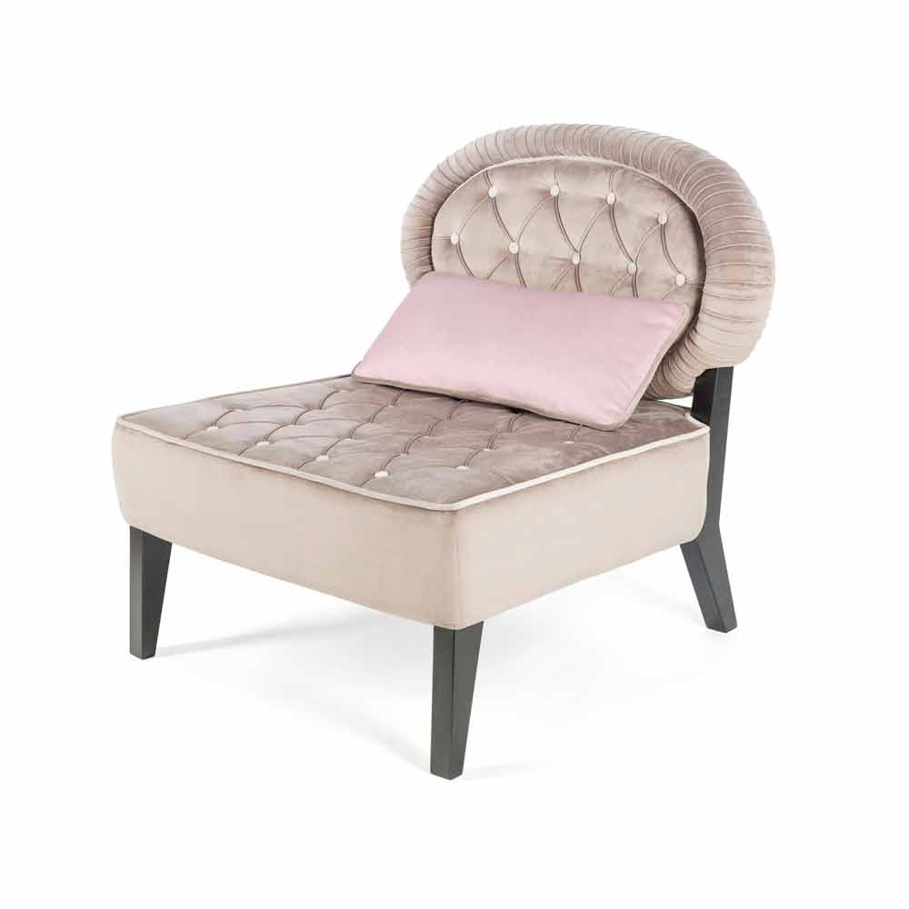 Det särskilda med denna Elizabeth fåtölj bifogas liksom i sin design, i sin sammetsfoder med capitonnè föreslog det på den känsliga nyanser av grått i mjukvävnad.