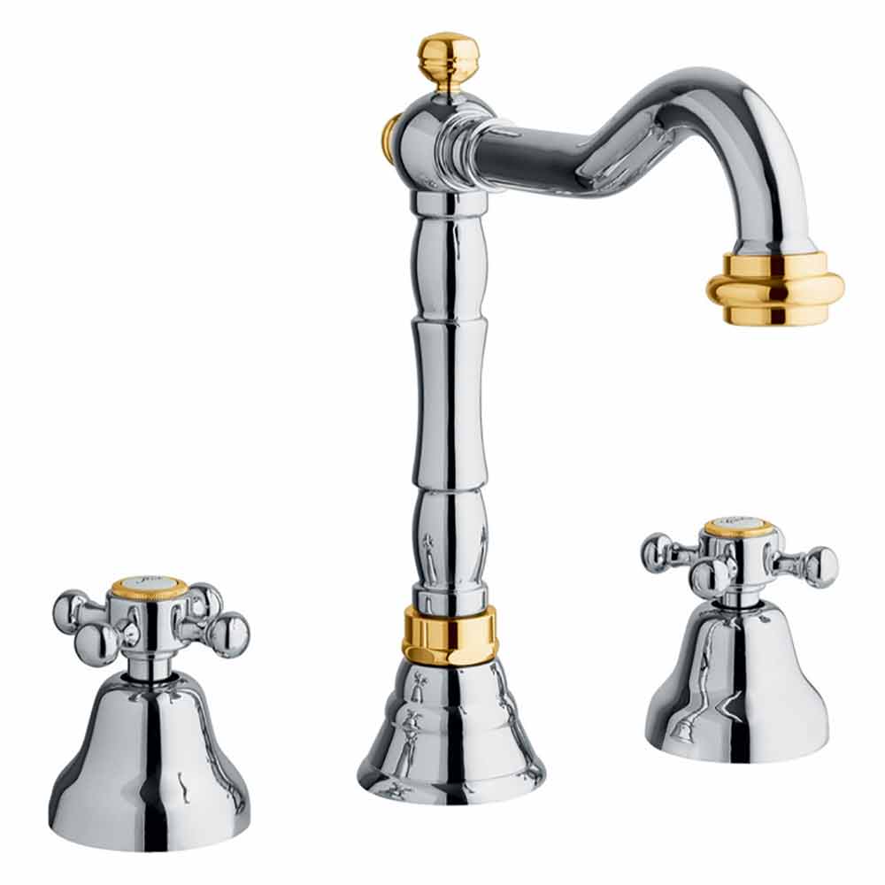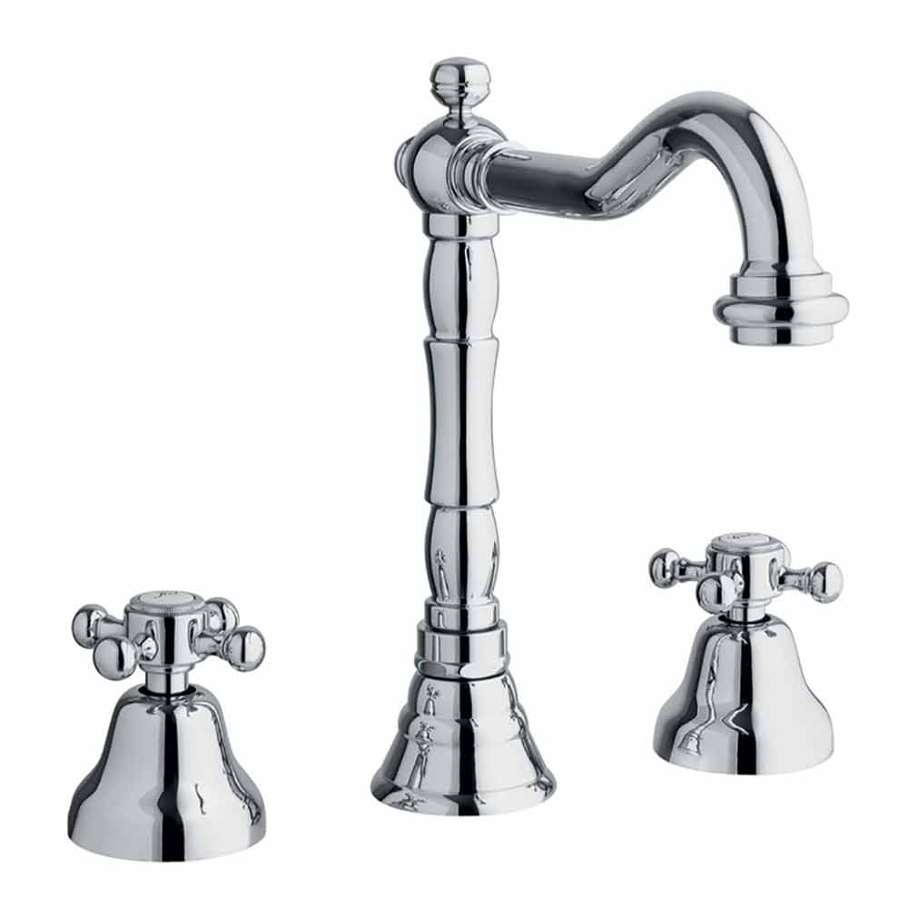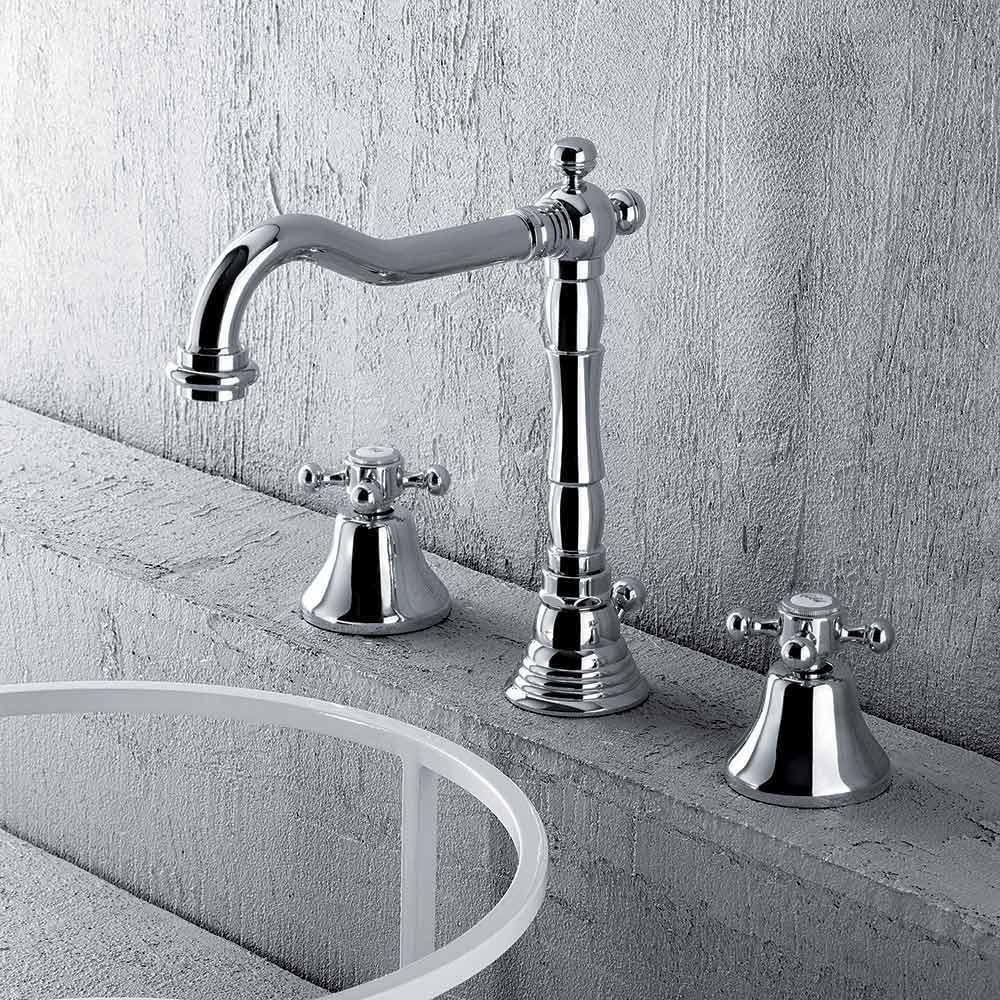 3-hålsblandare för handfat i klassiskt design i krom mässing Tillverkad i Italien.