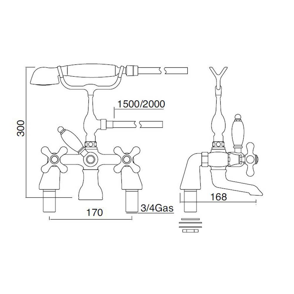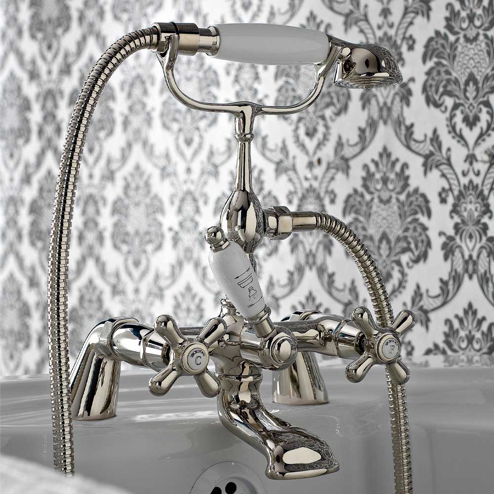 Klassisk badkarskran med handdusch handgjord mässing tillverkad i Italien.