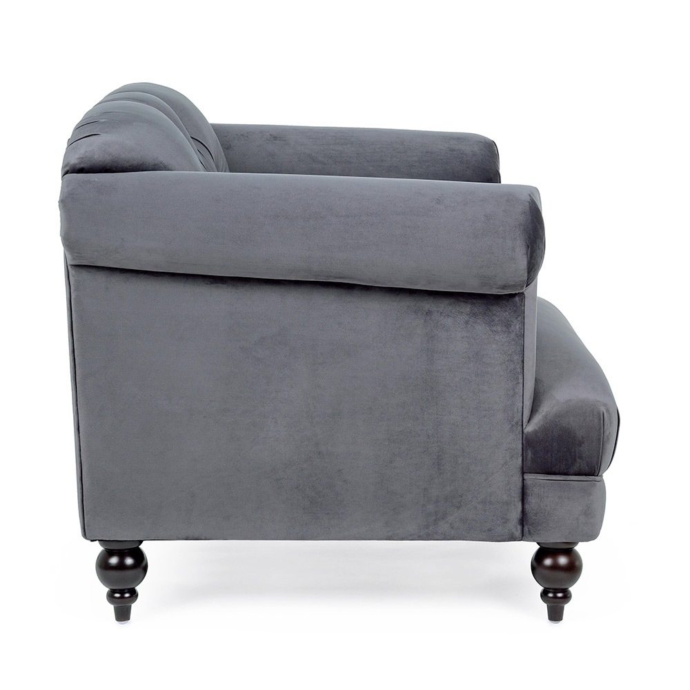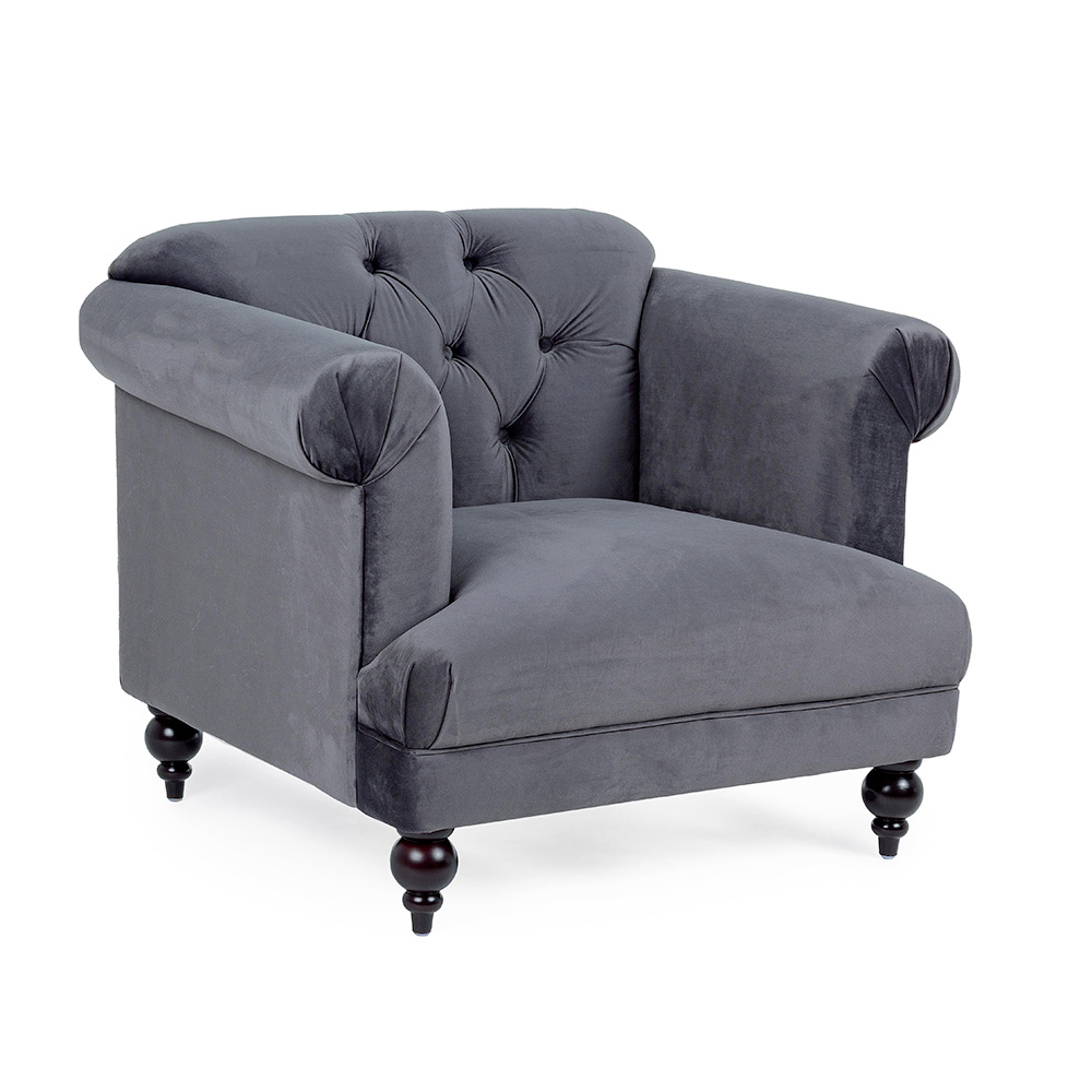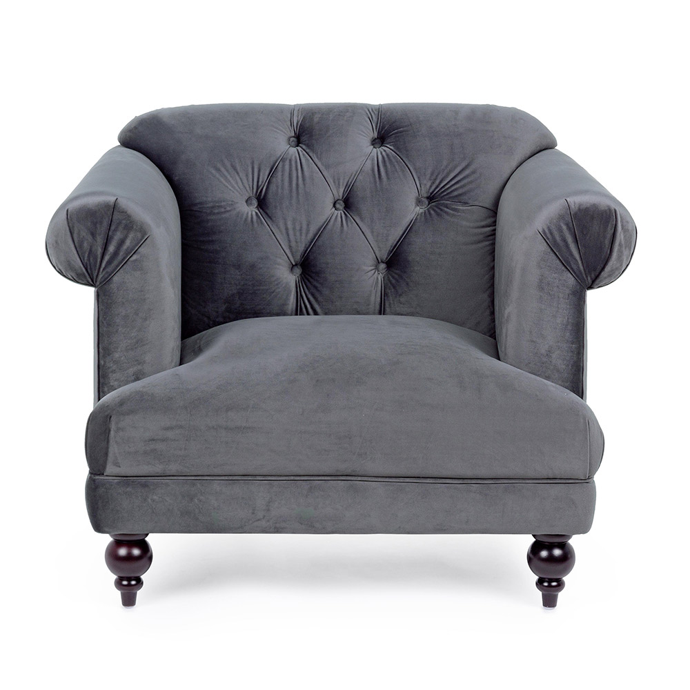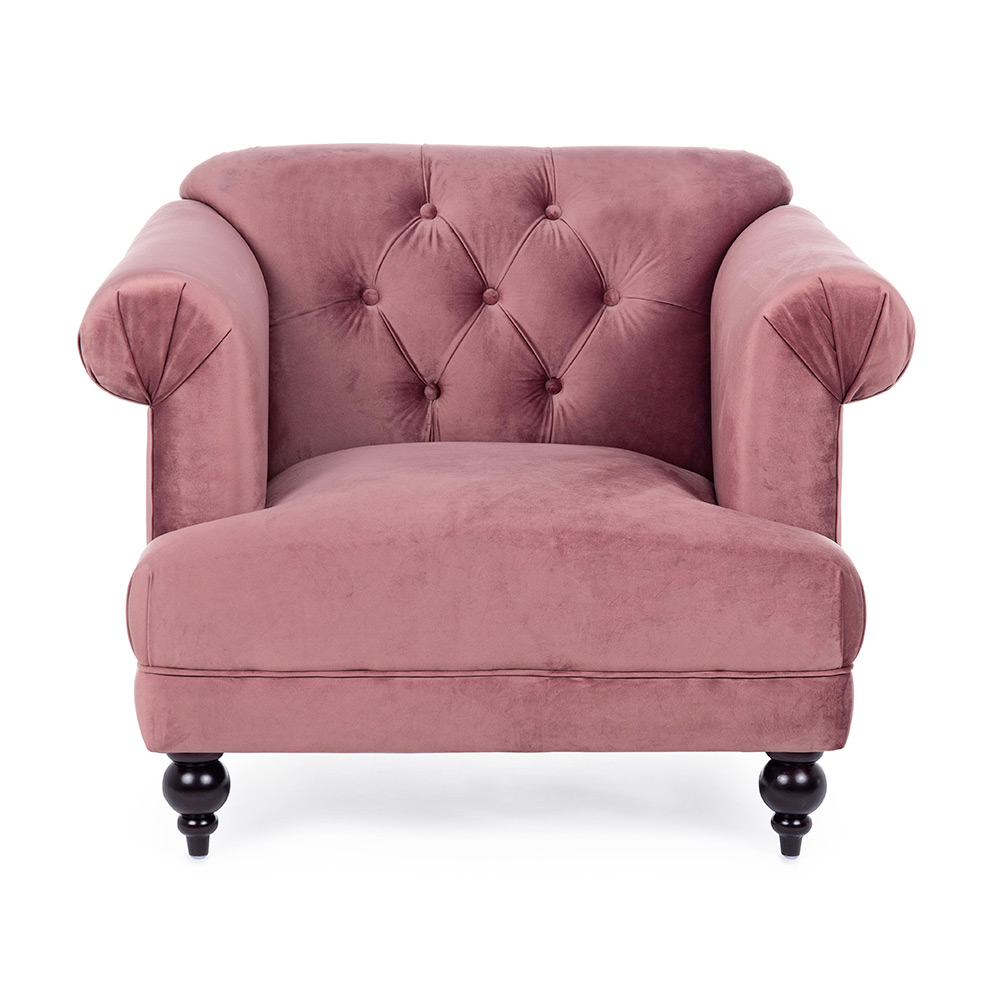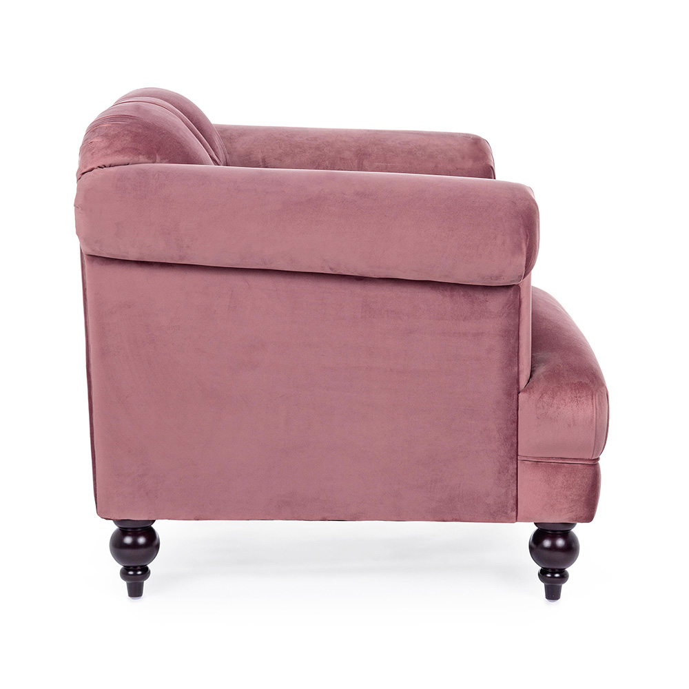 Klassisk designfåtölj i trä och grå eller rosa sammetseffekt - Sanny