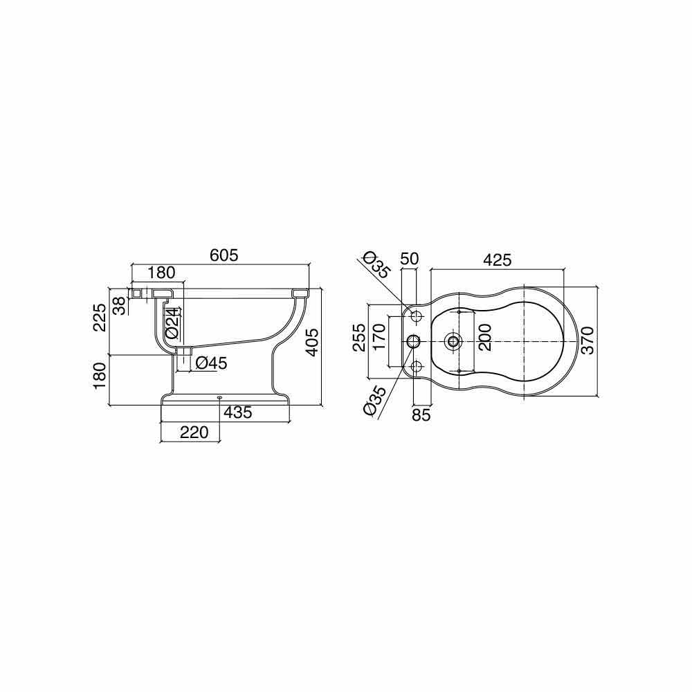Klassisk designbidett i vitt Paulina-keramik, tillverkat i Italien.