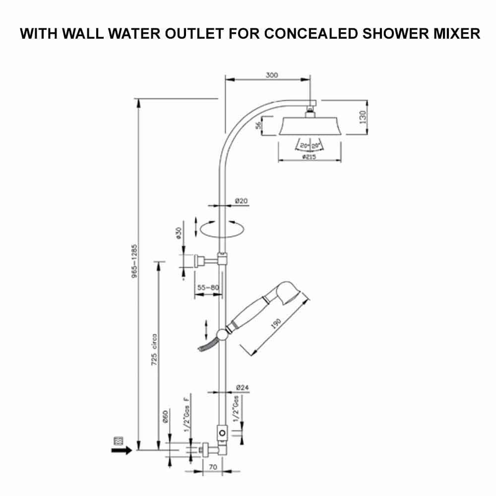 Klassisk design duschpelare i mässing med runt duschhuvud Tillverkad i Italien.