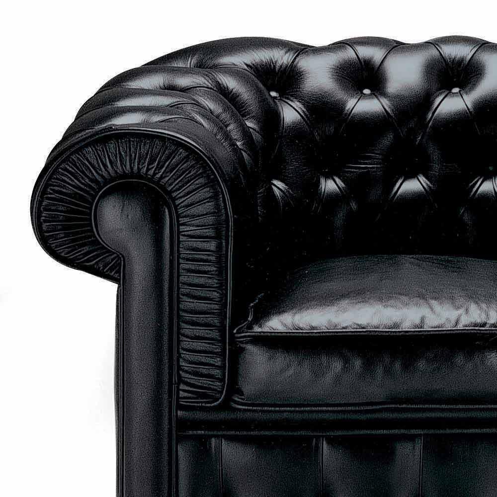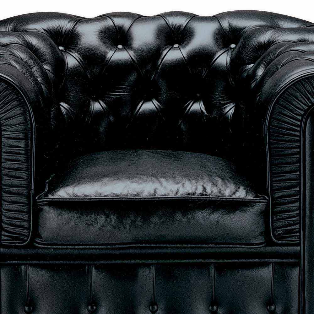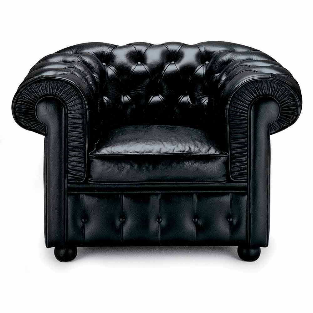 Klassisk fåtölj i skinn med träfötter tillverkade i Italien.