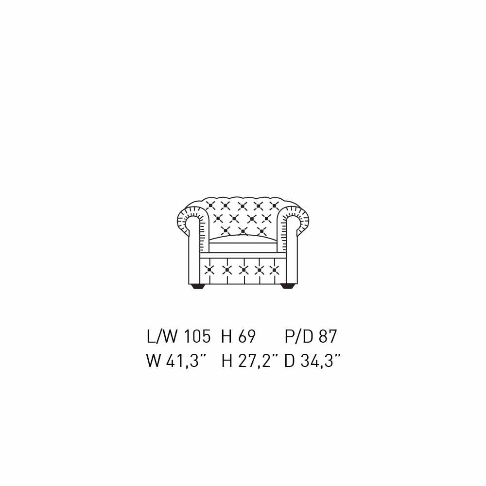 Vardagsrumsfåtölj helt tillverkad i Italien med invändig träkonstruktion vadderad med polyuretanskum och foder av polyesterfiber, sittdynor i steriliserat gåsdun,