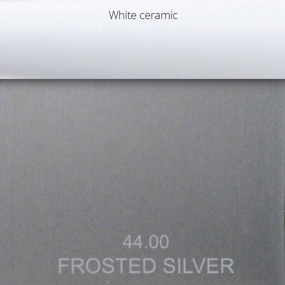 - Frostat Silver: matt borstad silverfinish med vita keramiska insatser på handtagen;