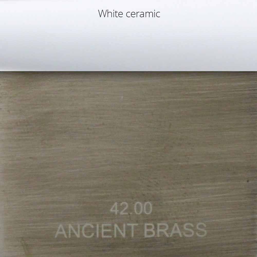 - Forntida mässing: matt borstad antik mässing med vita keramiska insatser på handtagen;