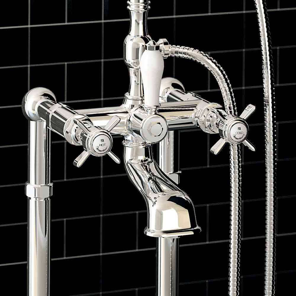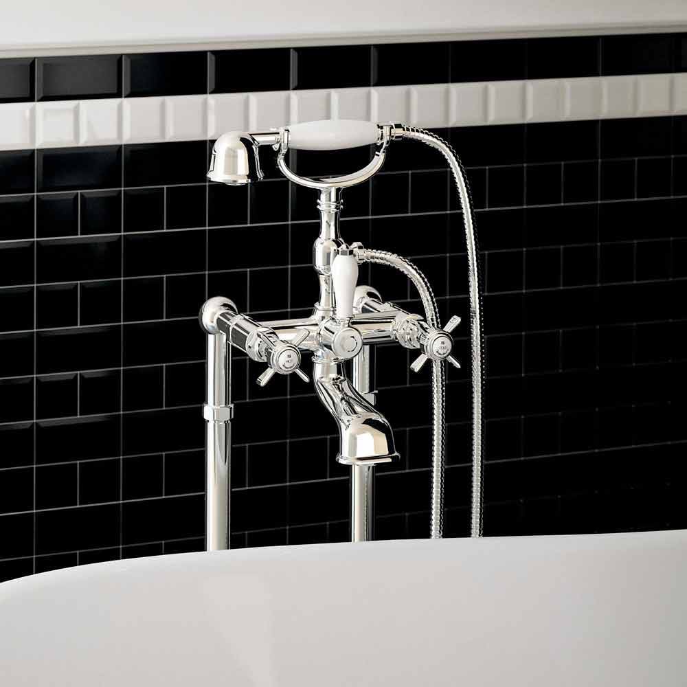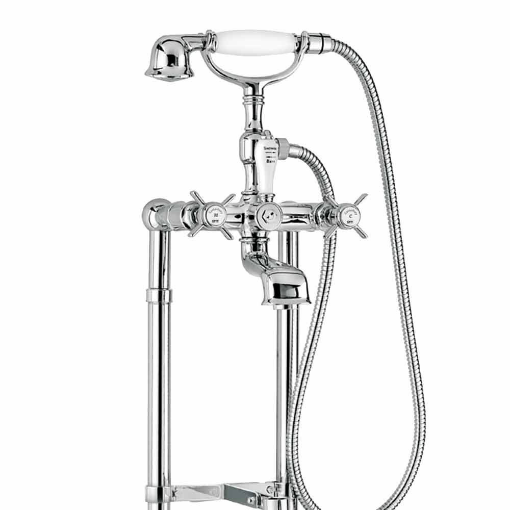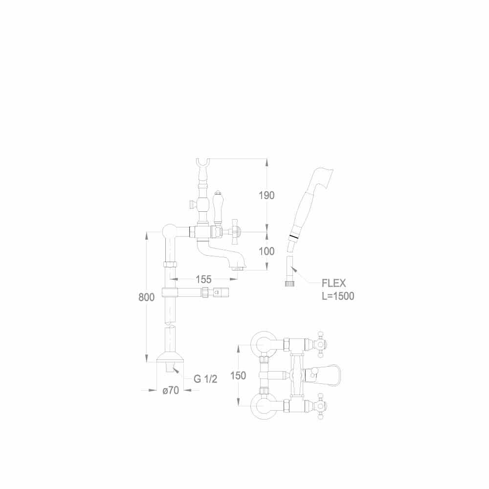 Utvändigt badkar på golvpelare med avledare och duplex dusch Made in Italy.