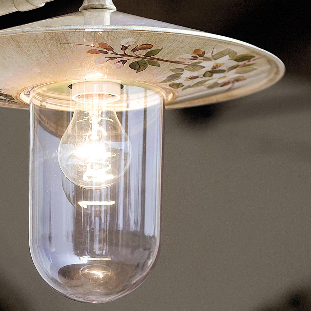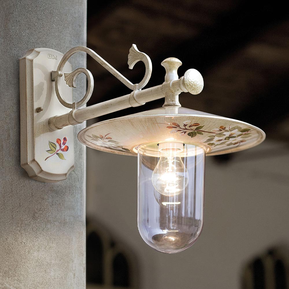 Denna trädgårdsvägglampa är helt gjord av aluminium med en handmålad blomsterdekoration för en klassisk och harmonisk stil mellan form och färg.