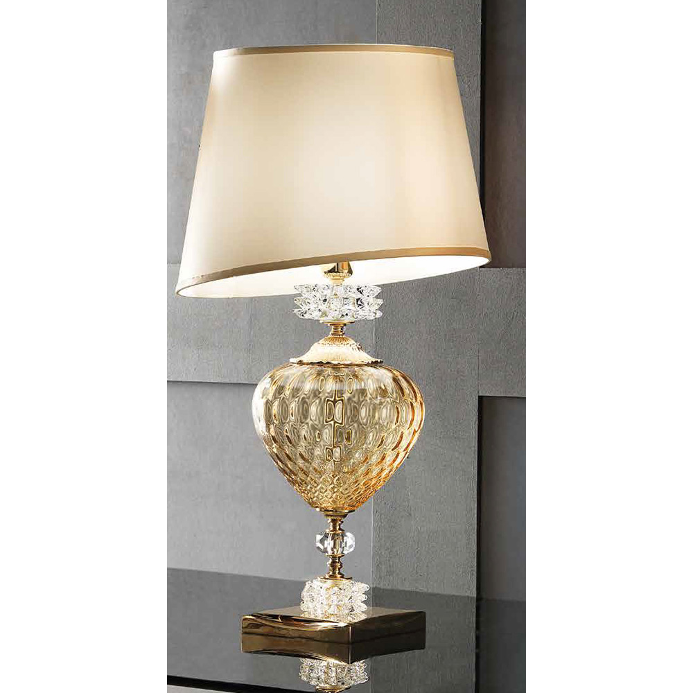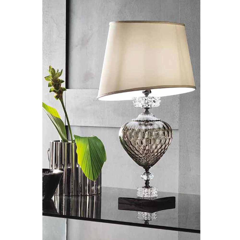 Bordslampa i handgjort glas och metall med lampskärm, italiensk lyx.