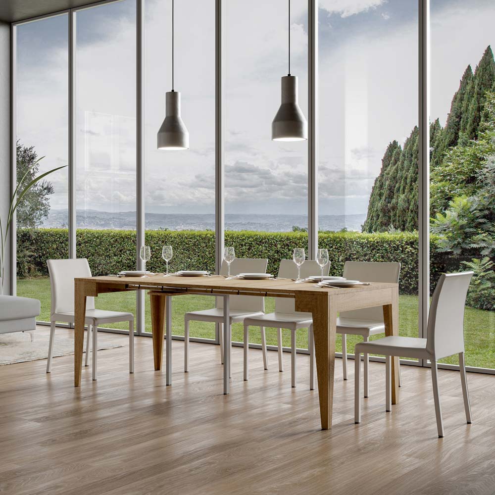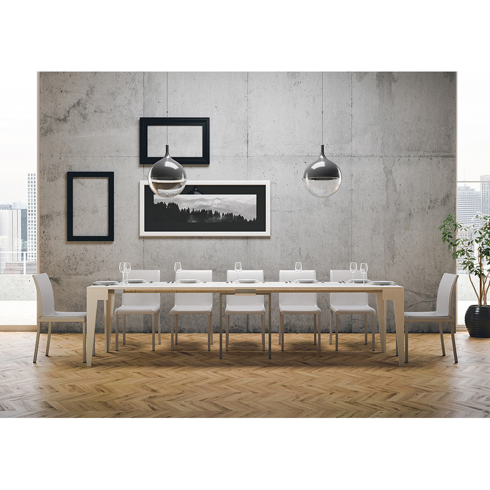 Detta utdragbara konsolbord är en sann hyllning till minimalistisk och samtida design. Detta konsolbord är perfekt för dem som söker en möbel som kombinerar rena linjer med förbluffande funktionalitet. Det kan förlängas med en enkel gest och förvandlar omedelbart utrymmet från ett lugnt hörn till ett mysigt centrum för gästfrihet.