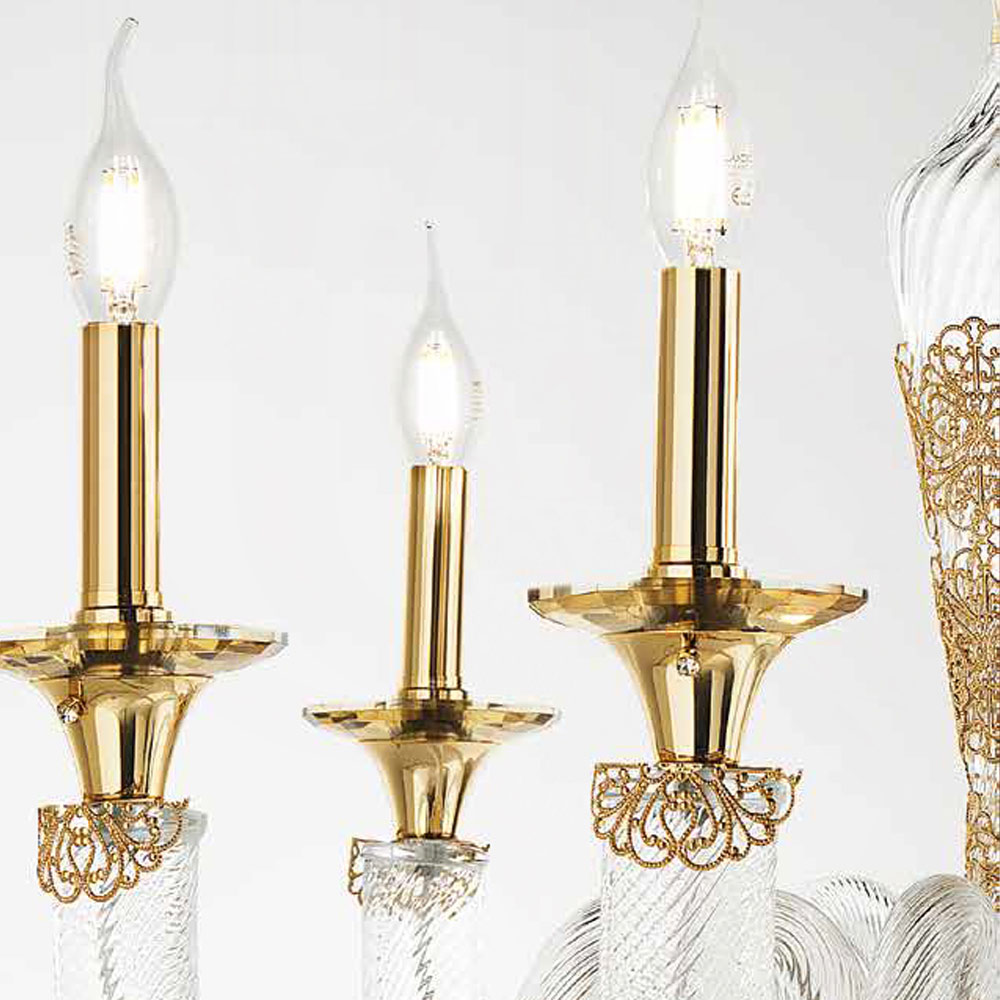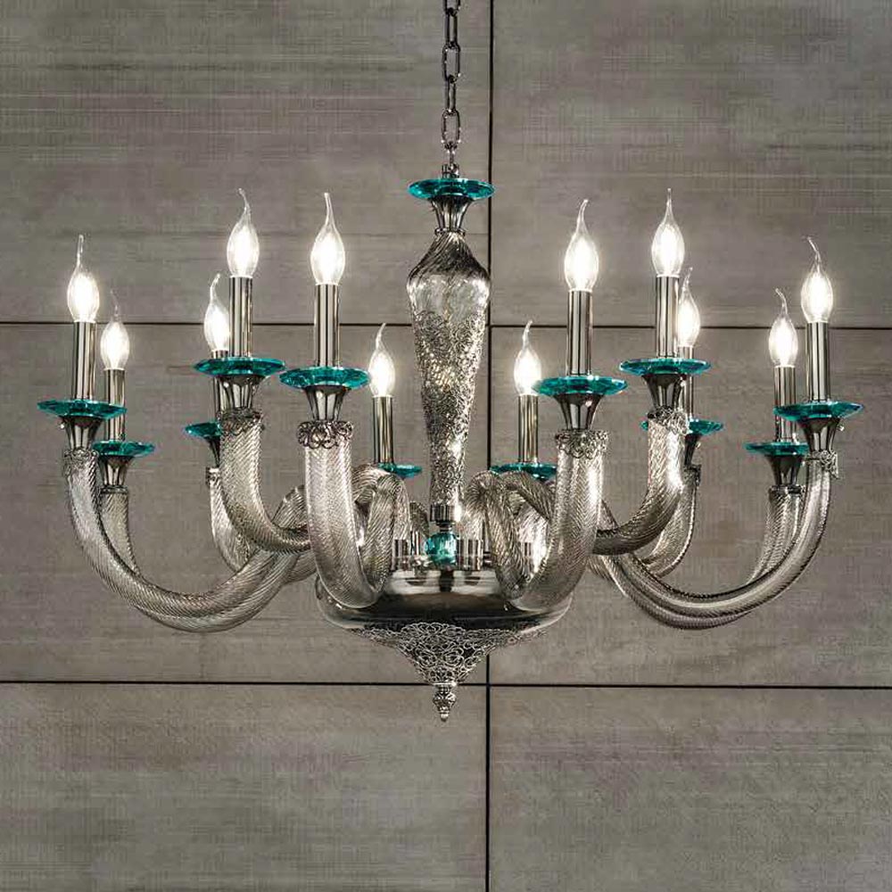 12 ljus ljuskrona i handgjorda glas och kristaller, italiensk lyx.