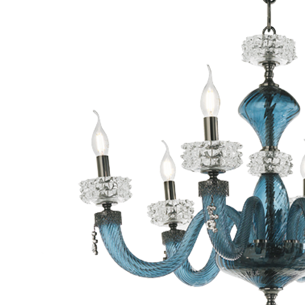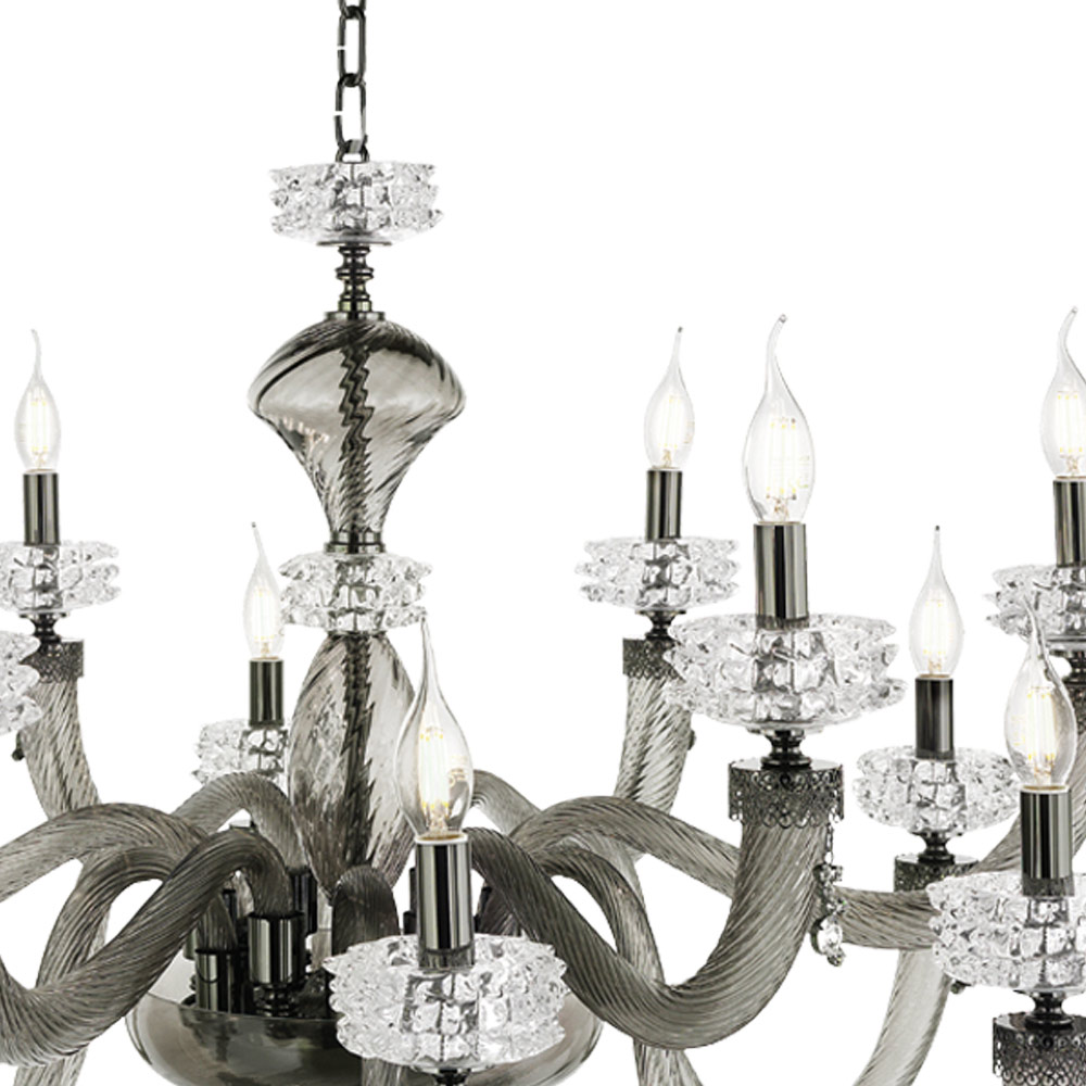 12 ljus ljuskrona i handgjorda glas och metall, italiensk lyxdesign.
