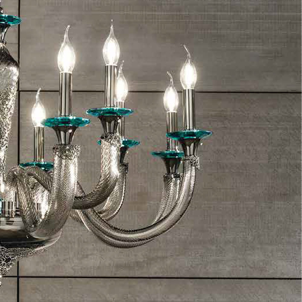 18 ljus ljuskrona i handgjorda glas och kristaller, italiensk lyx.