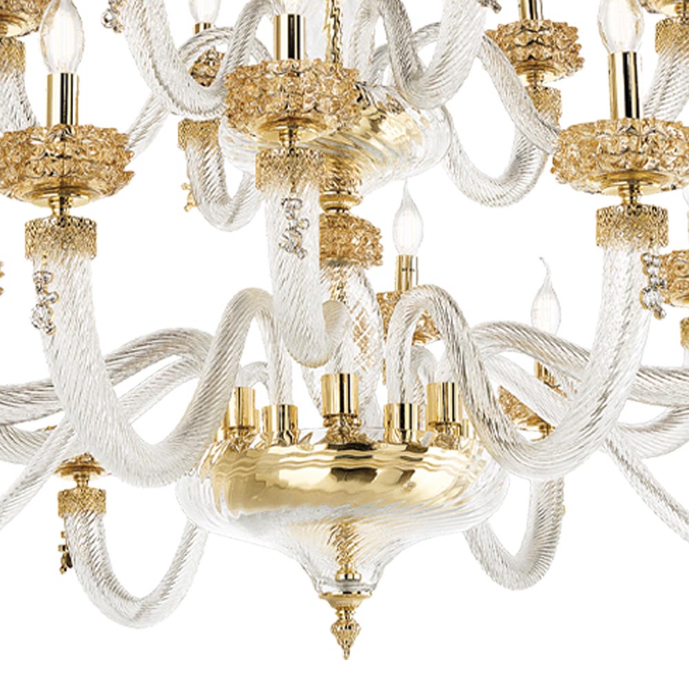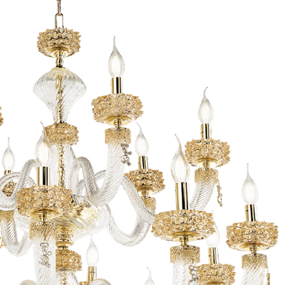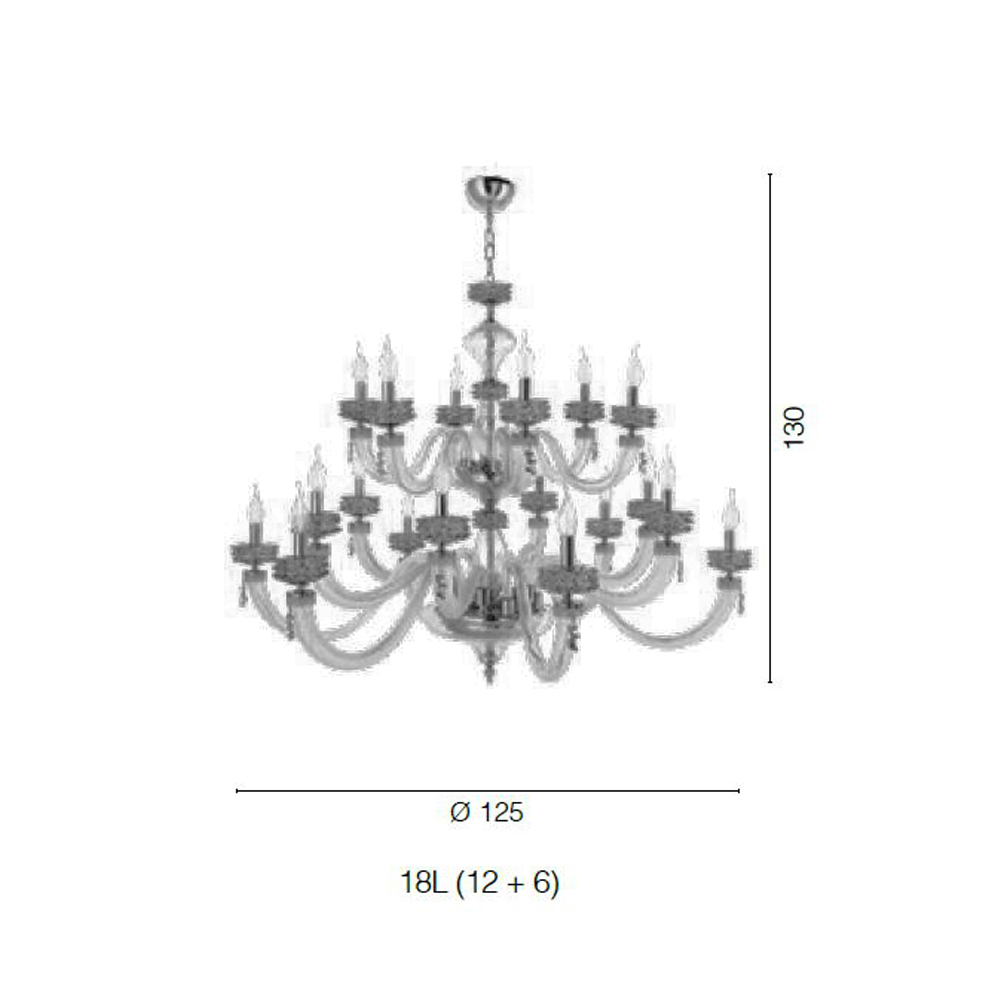 18 ljus ljuskrona i handgjort glas och metall, italiensk lyxdesign.