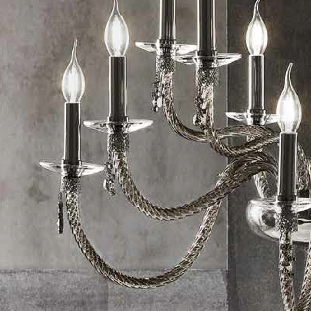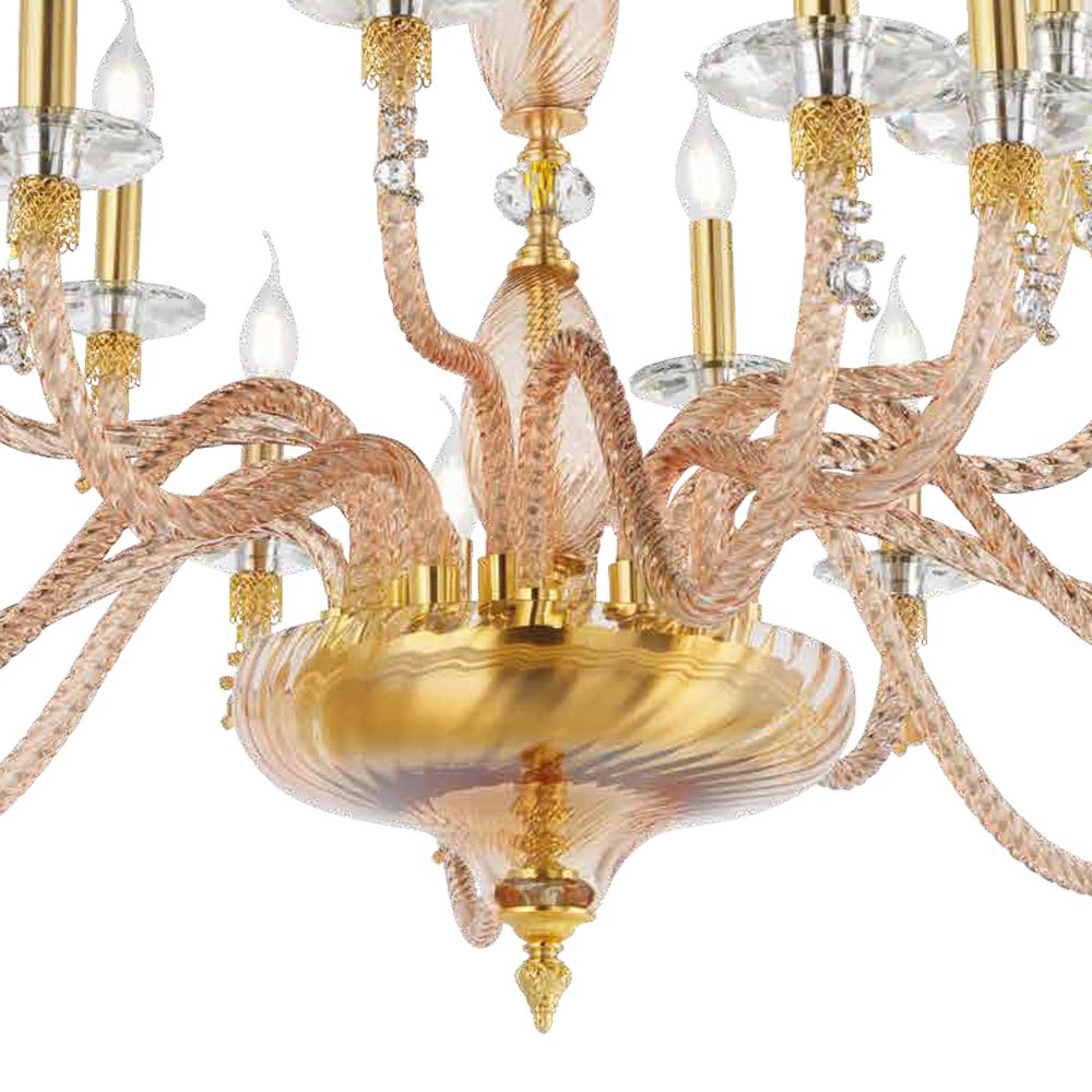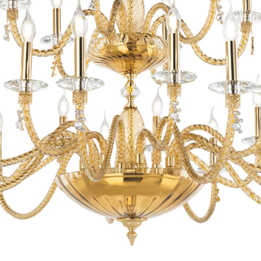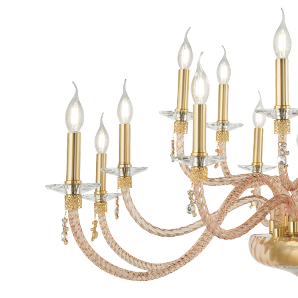 24 ljus ljuskrona i blåst glas och juveldetaljer, italiensk lyx.