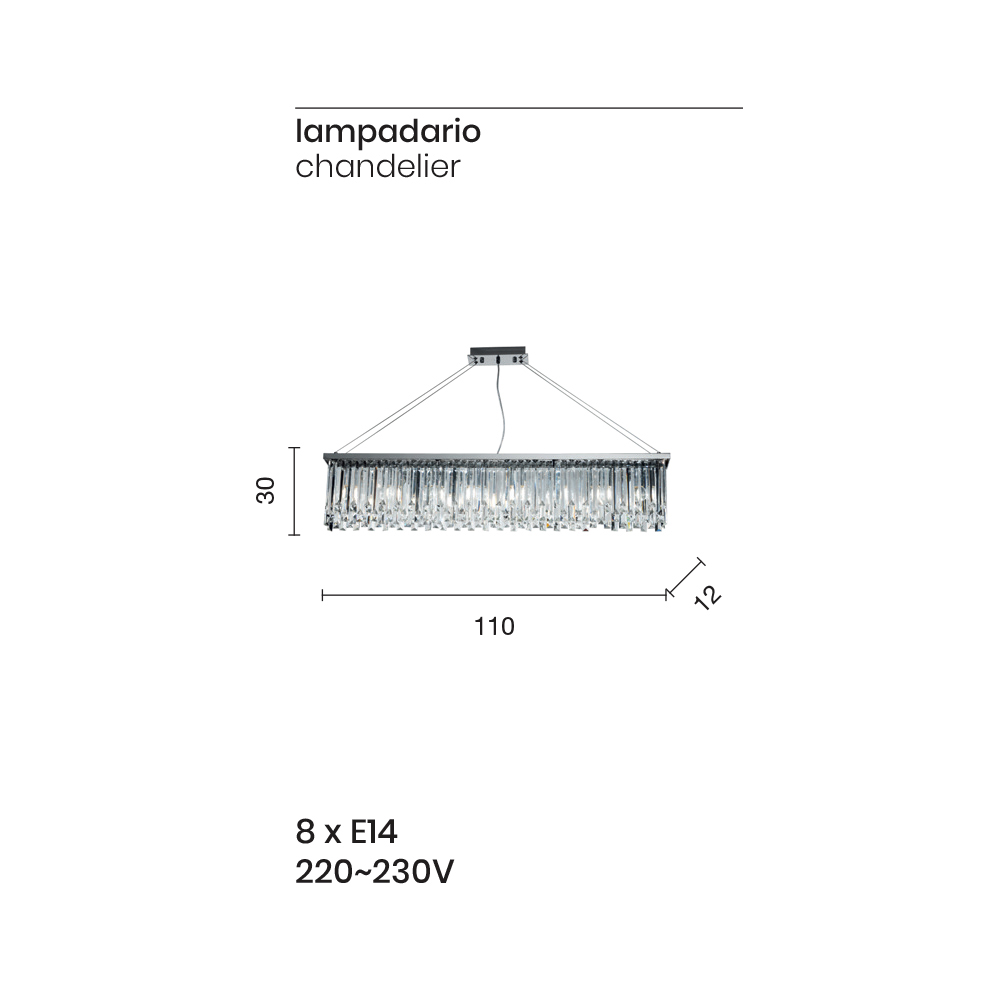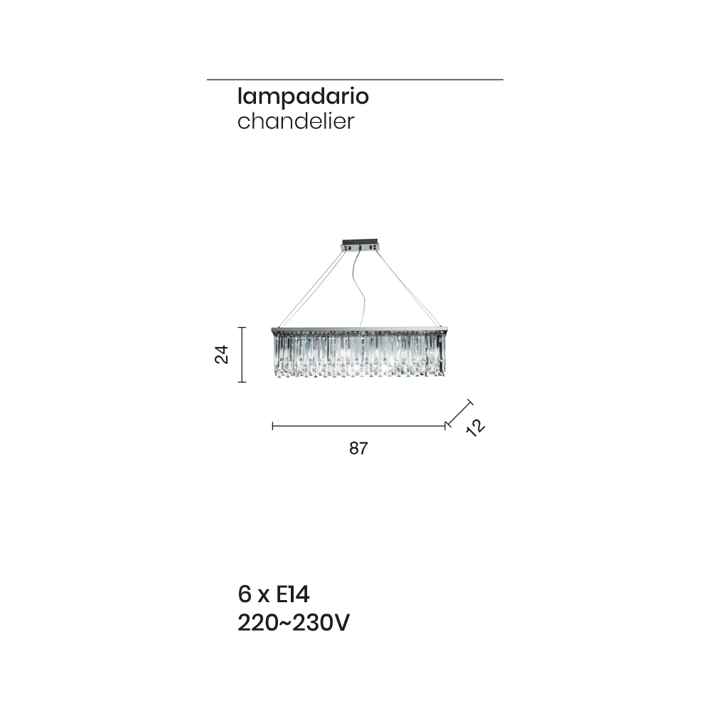 Finns i två olika storlekar, den består av en kromad metallstruktur och upphängning med justerbar längd stålvajrar .