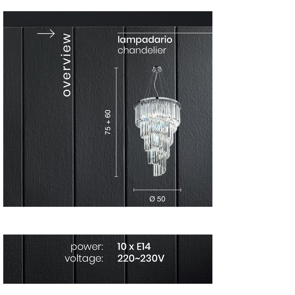 Dess verkliga starka sida består i de dekorativa elementen i slipad kristall som dekorerar och lyser upp varje rum med smak och karaktär, i en blandning av stil, klass och innovation.