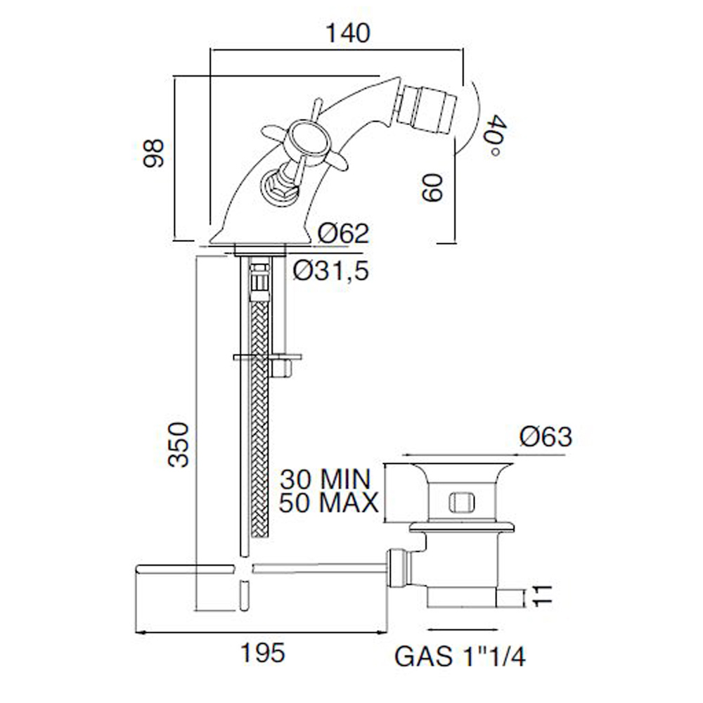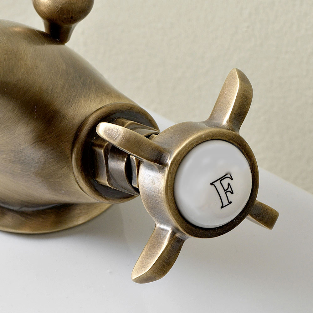 Enhåls bidéblandare i handgjord mässing i klassisk stil tillverkad i Italien.