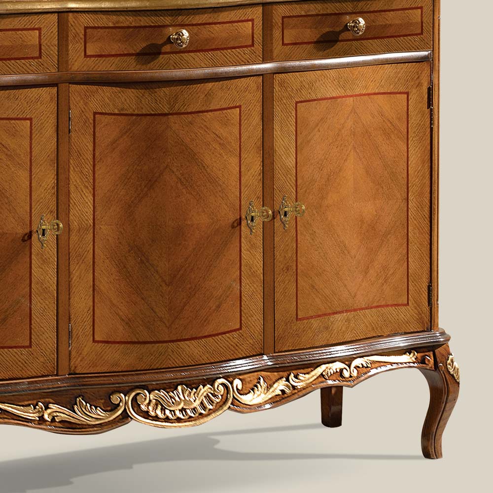 Klassisk vardagsrumsskänk i vitt eller valnötsträ Tillverkad i Italien.