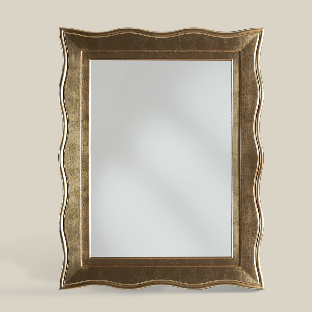 Elegant spegel i klassisk stil gjord med formad ram i bladguld . Ett unikt och raffinerat komplement, helt tillverkat i Italien av skickliga hantverksmästare , konstmästare som avslutar varje komplement med visdom och smak för elegans. Produktionen utförs med fina material och utför arbetet för hand med största omsorg och professionalism som utmärker Made in Italy -produkter.
