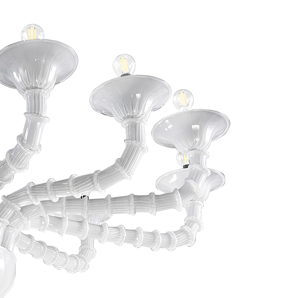 Handblåst vit venetiansk glaskrona med 12 ljus, klassisk stil.