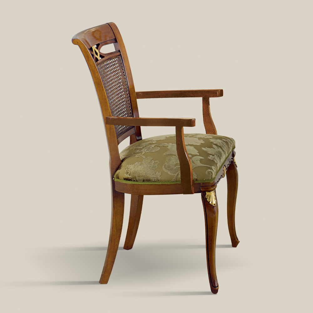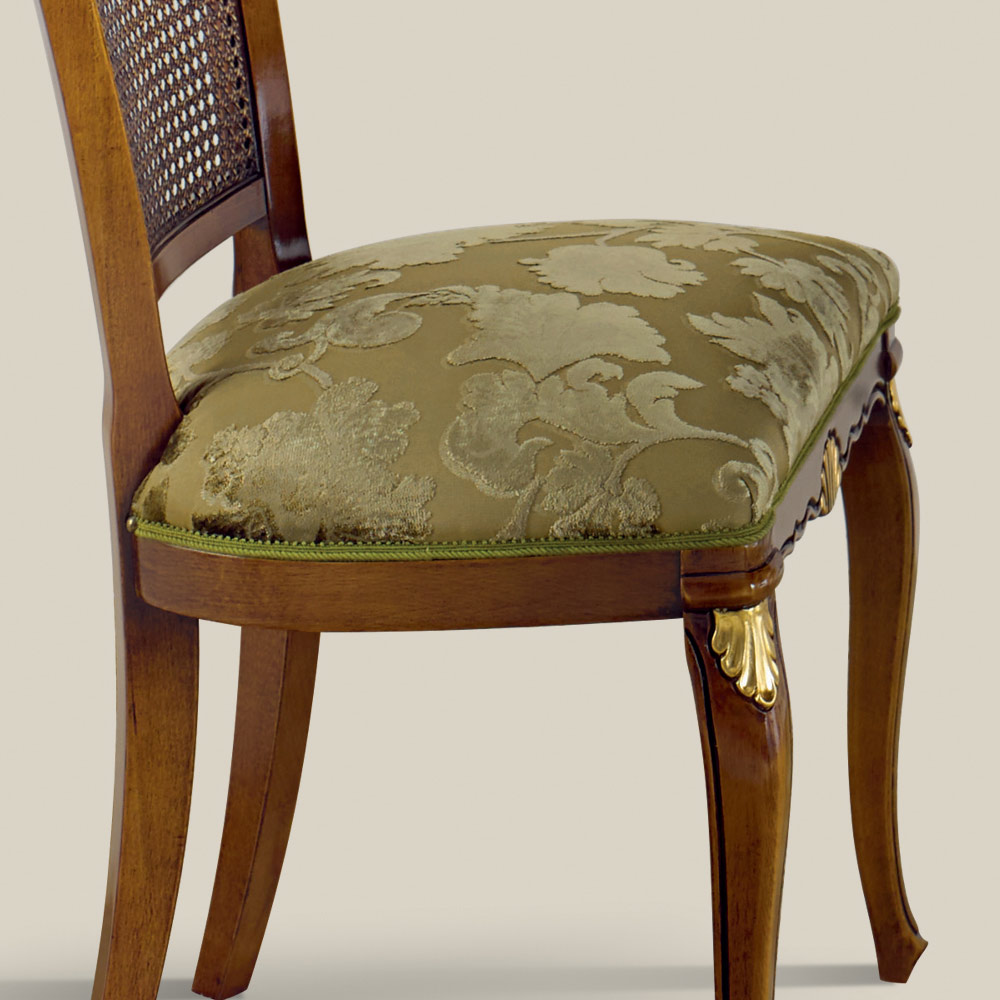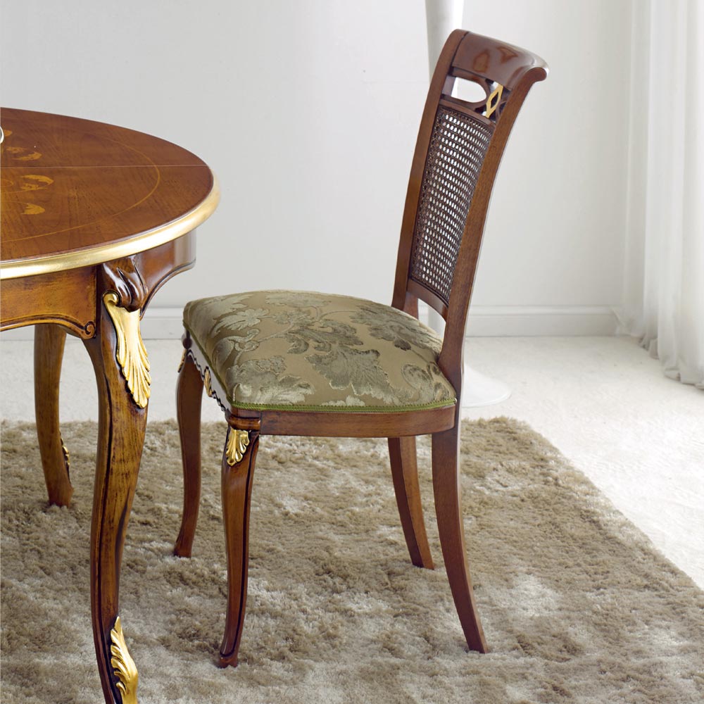 Klassisk stol i valnötsträ med stoppad sits Tillverkad i Italien.