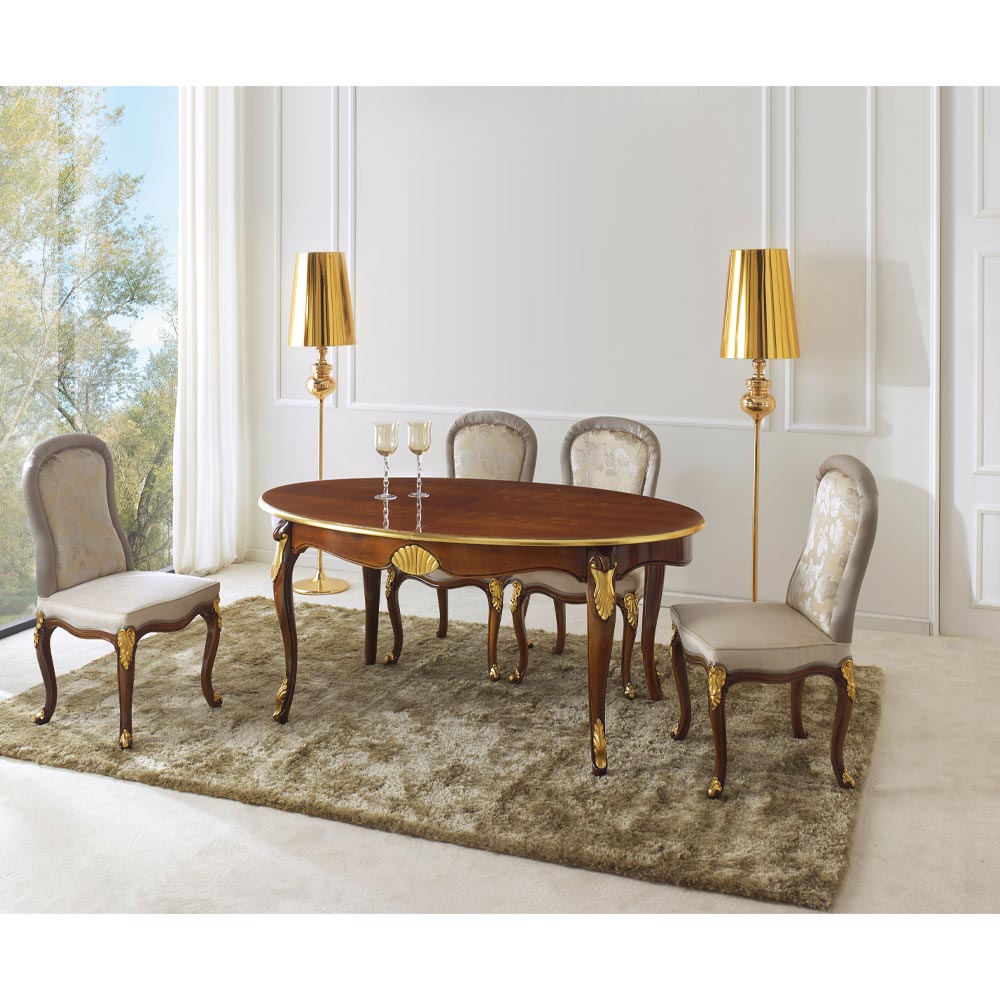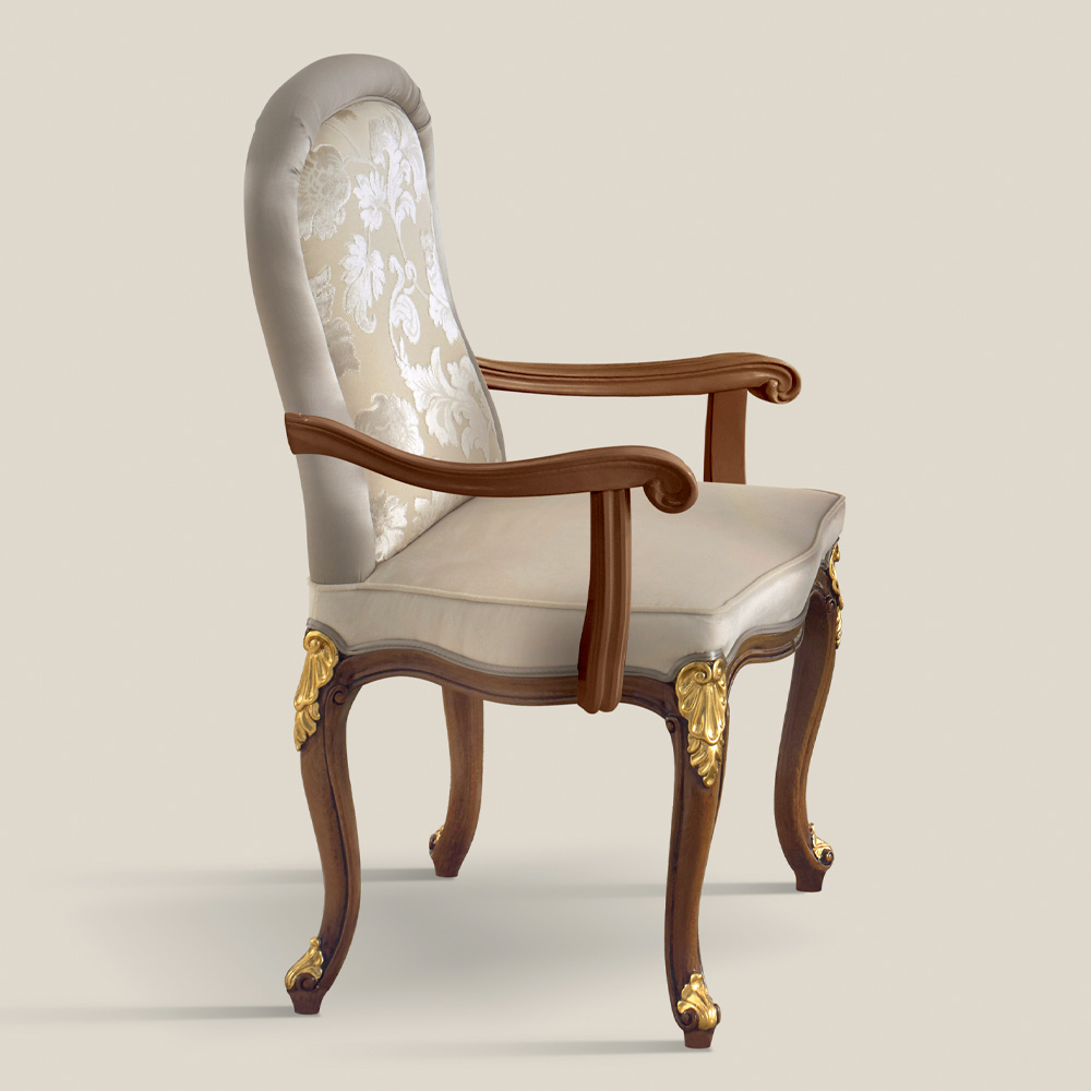 Klassisk stol i valnötsträ och stoppat tyg Tillverkad i Italien.