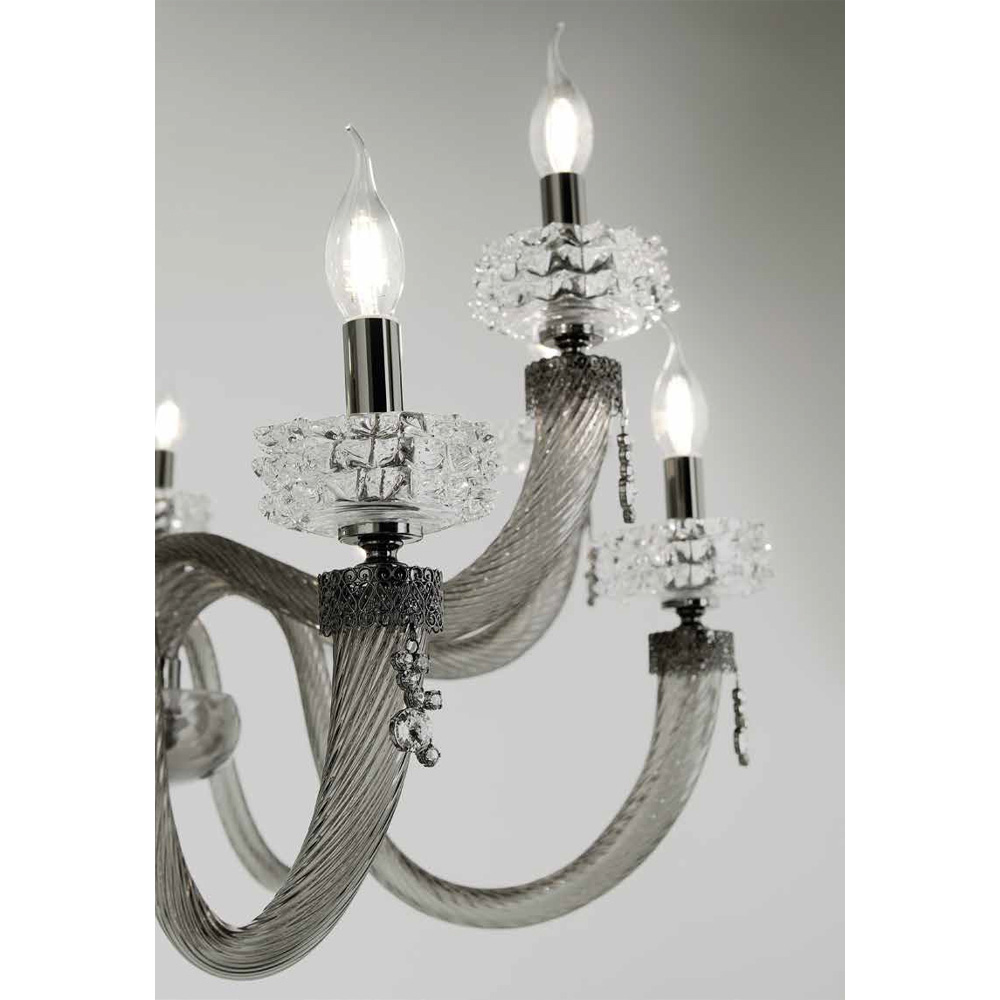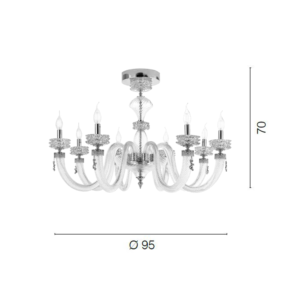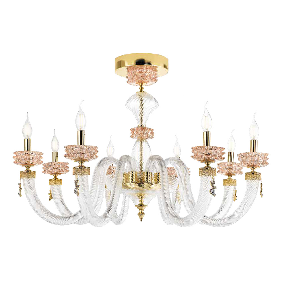 8 lampor taklampa i handgjorda glas och metall, italiensk lyxdesign.