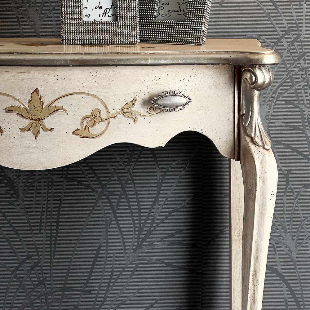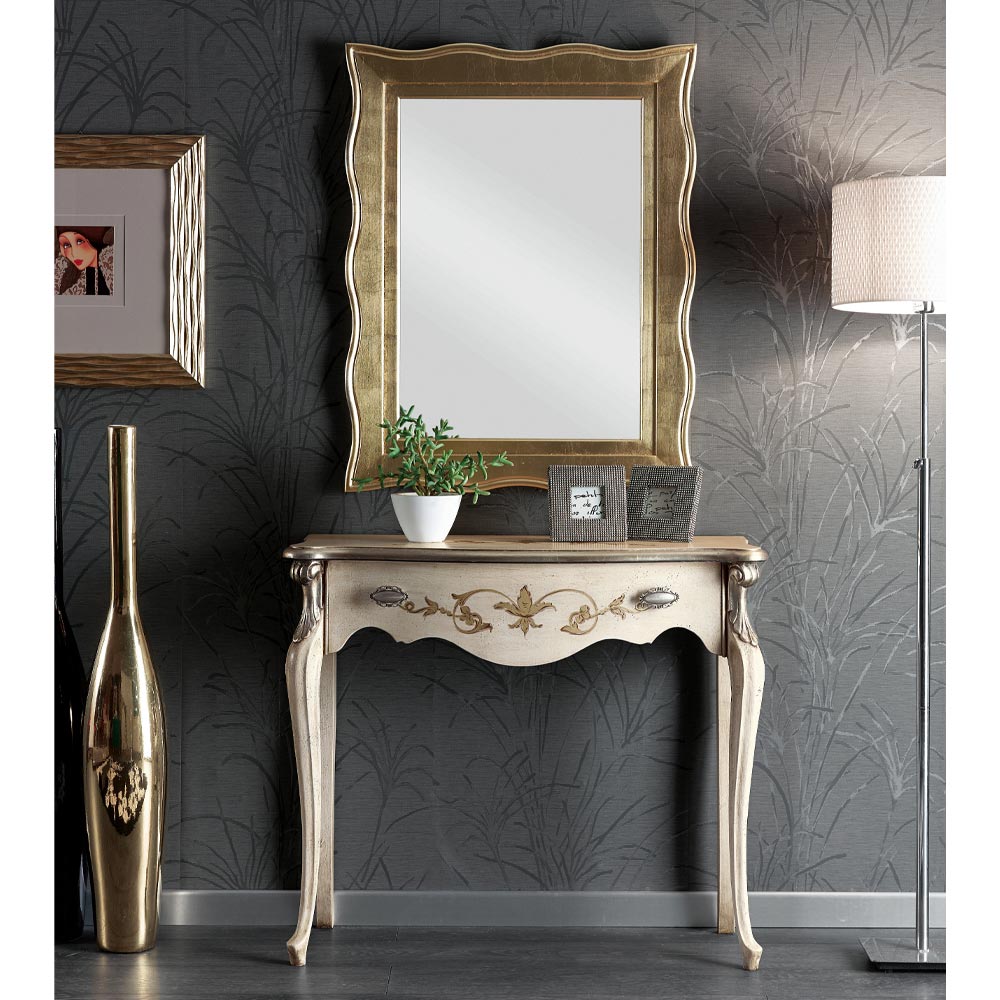 Hallkonsol i klassisk stil gjord av trä komplett med praktisk och rymlig låda tillgänglig i Bassano valnöt, antikvitt och svart och silver finish. Ett unikt och raffinerat komplement, helt