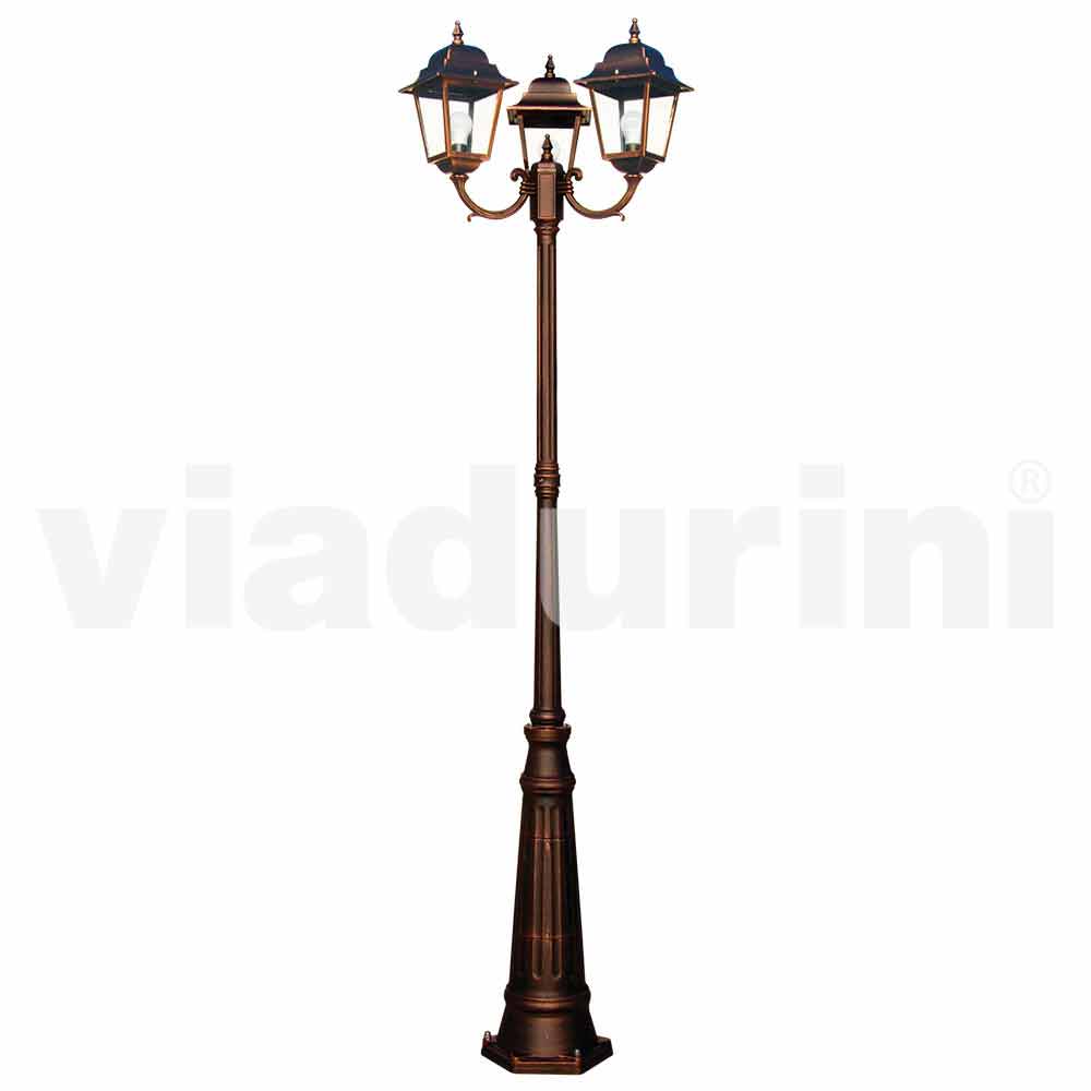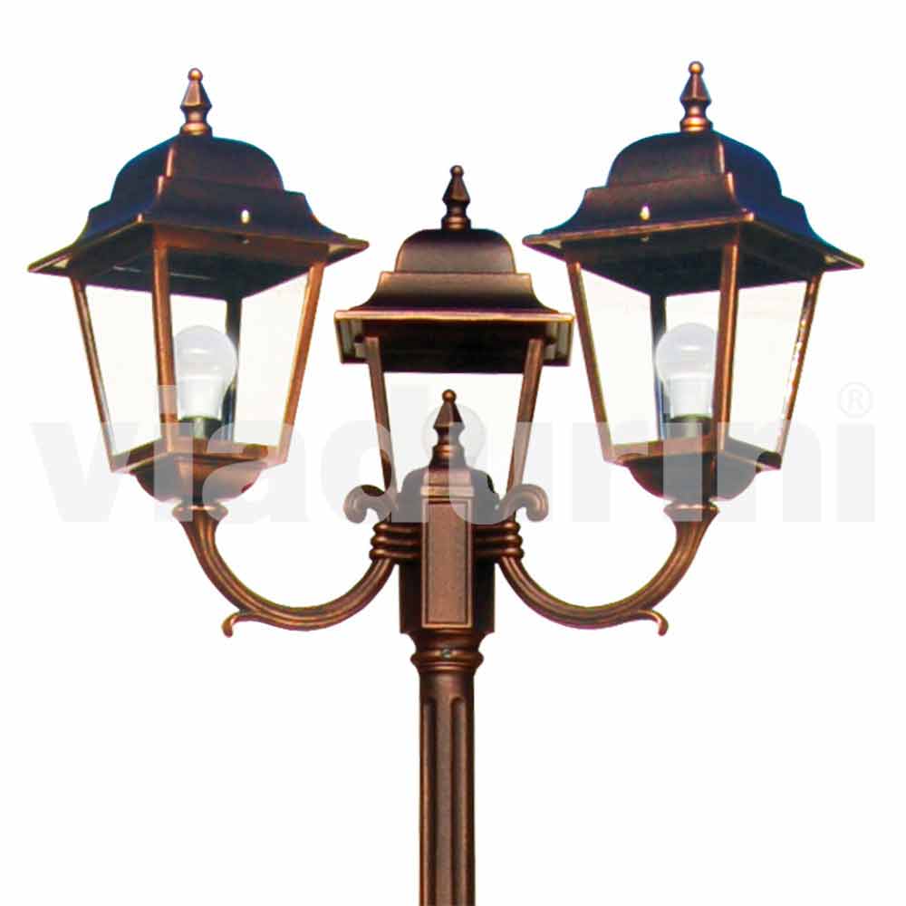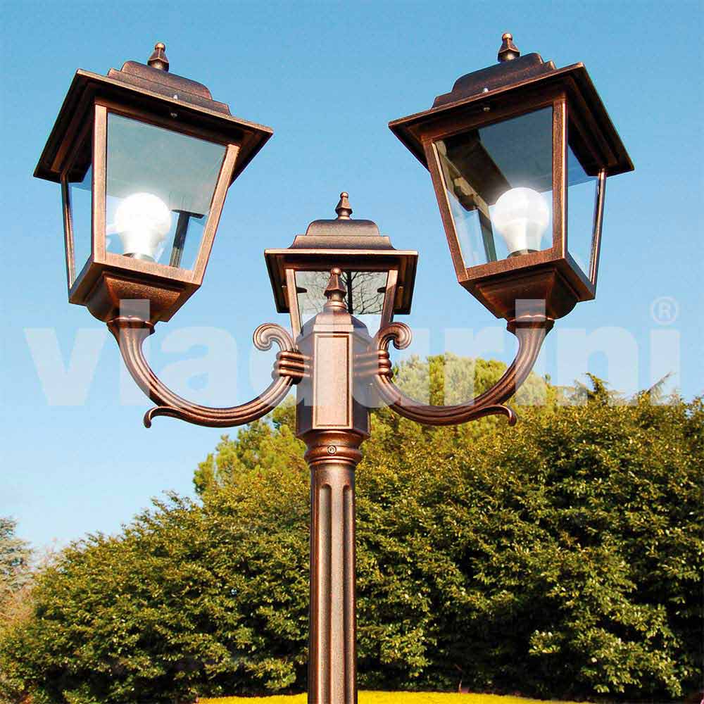 Klassisk utomhuslyktstolpe i aluminium tillverkad i Italien, Aquilina Aquilina är en treljus trädgårdslampa handgjord i Italien med högkvalitativt material: formgjuten aluminiumstruktur och glasdiffusor tillgänglig: transparent eller sandblästrad.