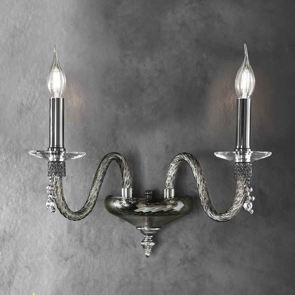 Applilque 2 lampor i blåst glas och juveldetaljer, italiensk lyx.