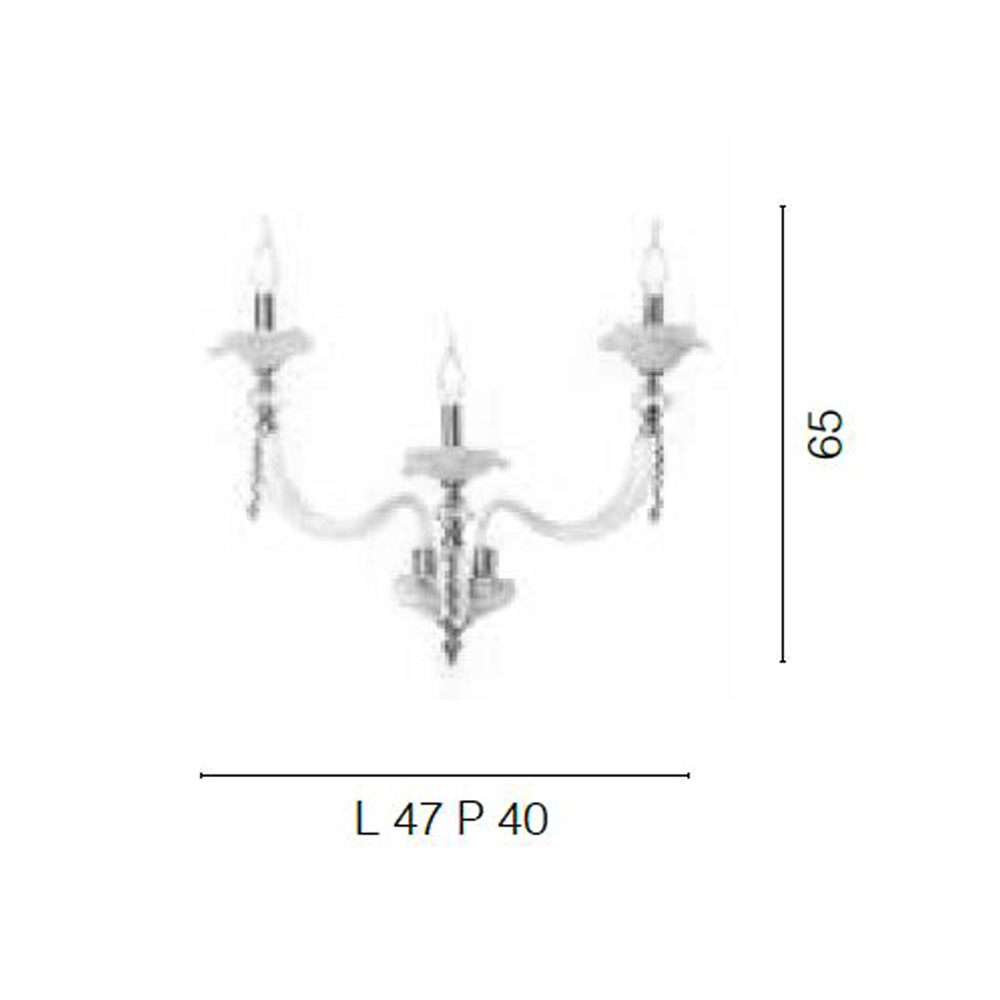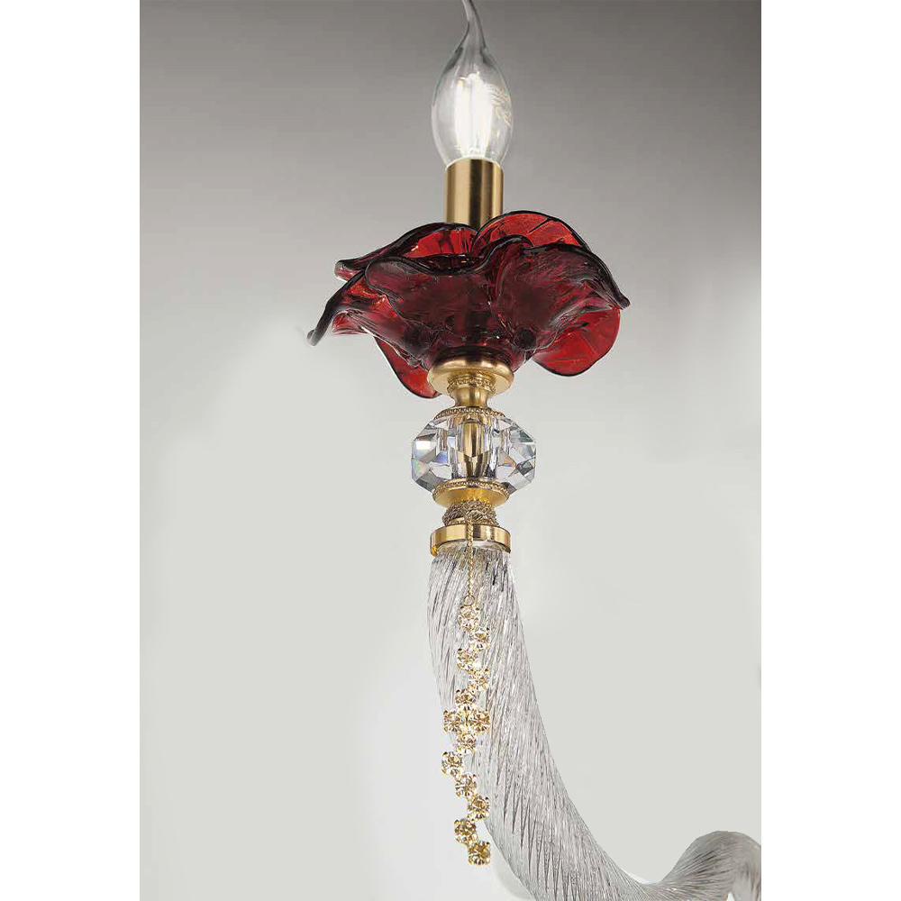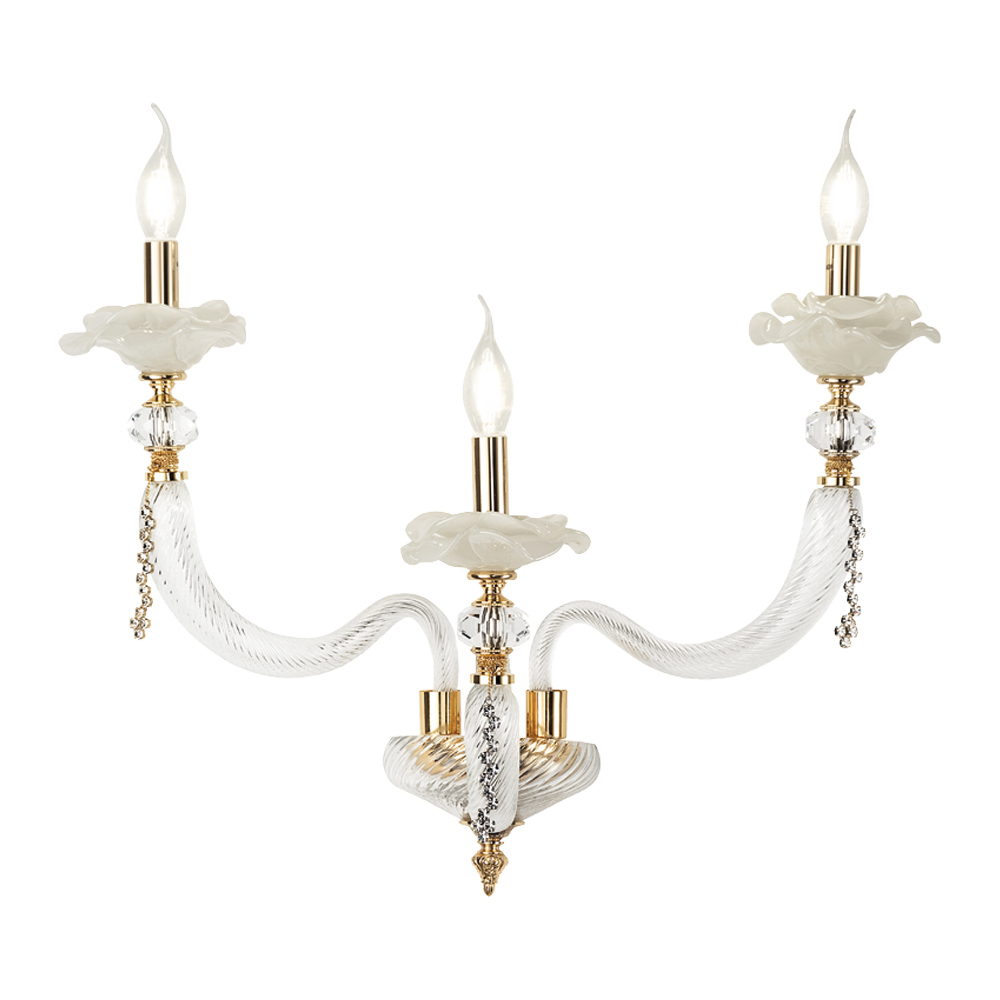 Handgjord 3-ljus vägglampa i blåst glas och blomsterdekorationer, italiensk lyx.