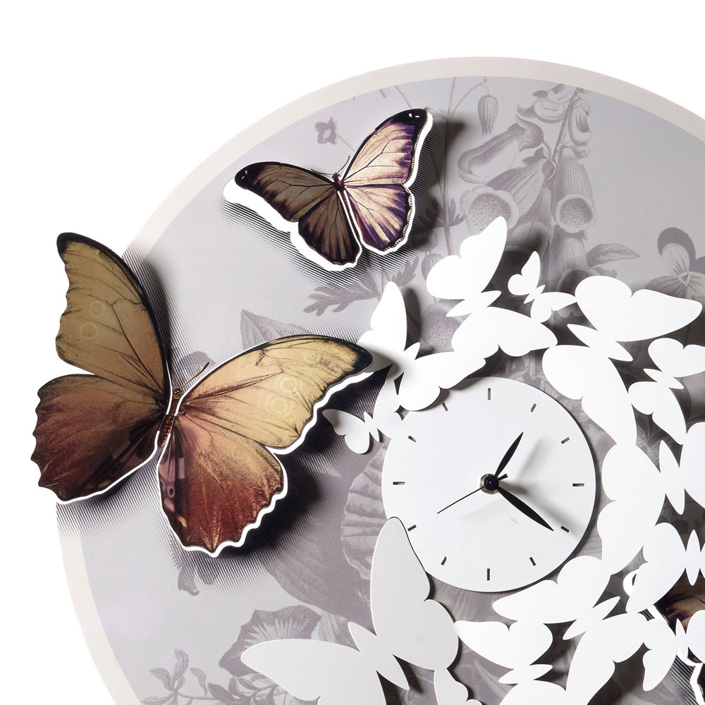 färgade fjärilar uttrycker livlighet och lätthet. Kombinationen av dessa små djur skapar en attraktiv effekt och en unik design. Urtavlan är designad in i minsta detalj och framhäver hantverket och uppmärksamheten på perfektion.