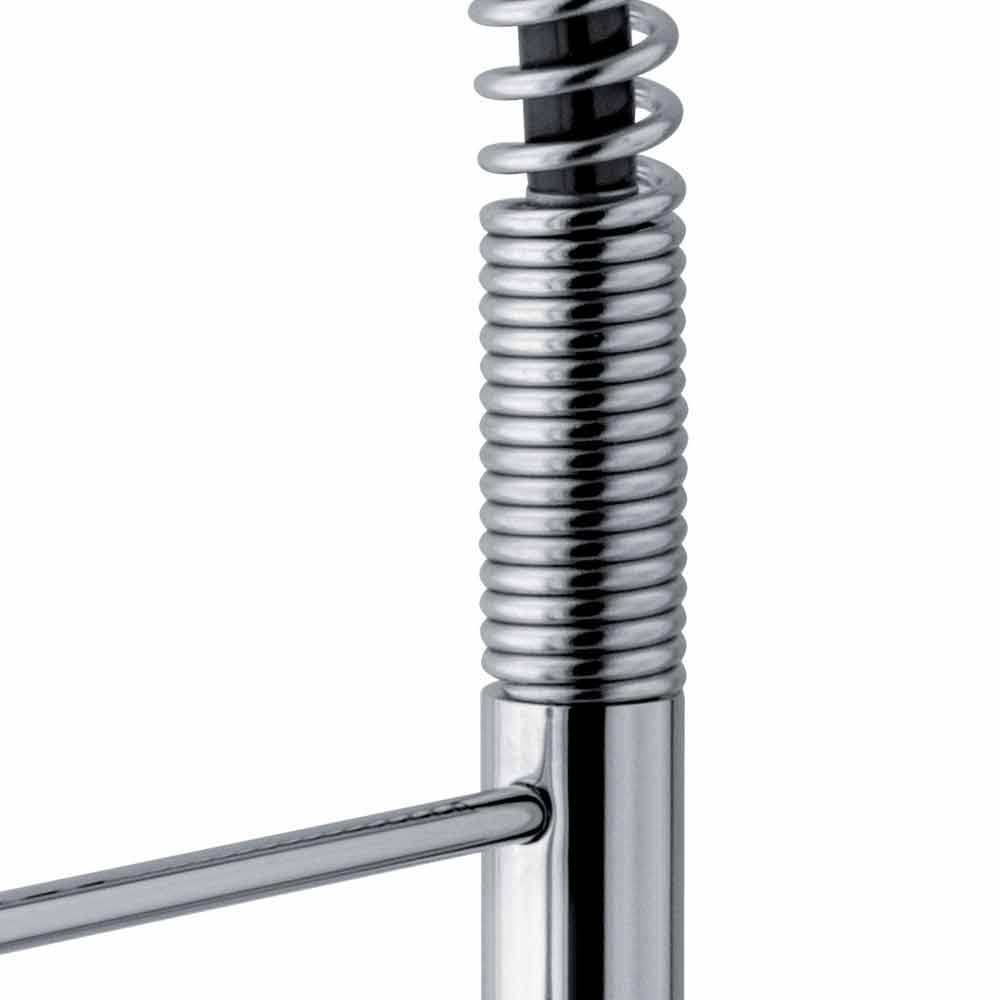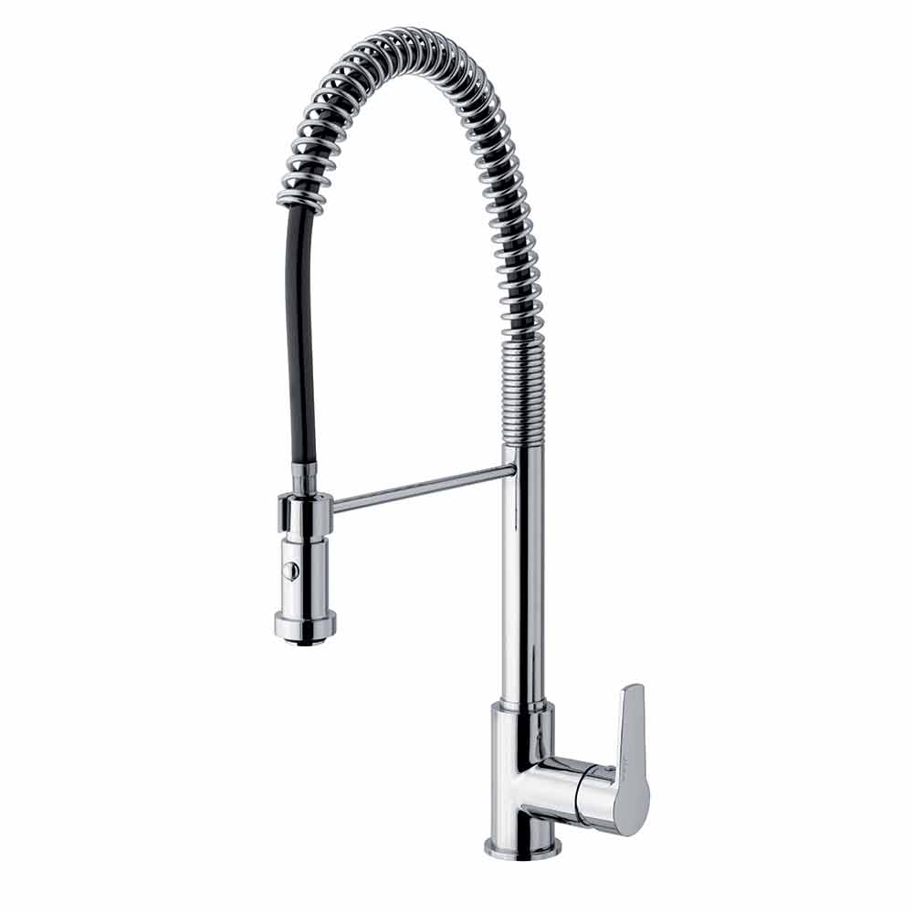 Tillverkad i Italien köksblandare av förkromad mässing . Tack vare den justerbara pipen med fjäder och 2-jet-duschen samlas funktionalitet och design för att ge liv åt den perfekta produkten för ett kök med ett modernt och innovativt utseende utan att försumma en extremt enkel och praktisk användning. Vad som ökar värdet ännu mer är närvaron av en patrondefinierad ES som kan tillföra kallt vatten när spaken lyfts till mittläget, vilket undviker behovet av varmvatten från pannan och därmed möjliggör betydande energibesparingar.