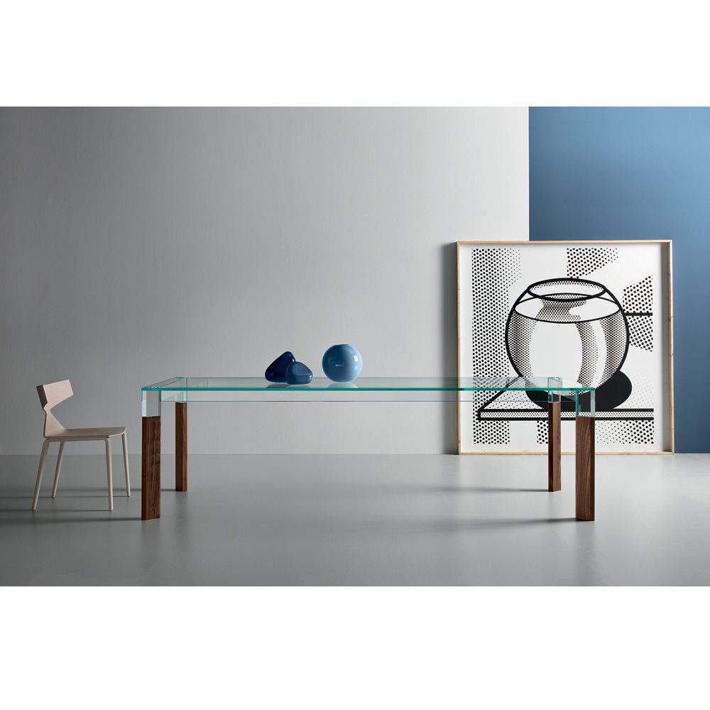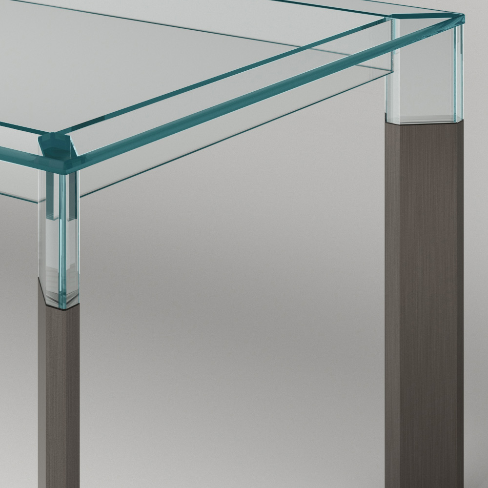 glas och massivt trä . En tidlös inredningslösning, lämplig för olika stilar, som kan understryka den perfekta föreningen mellan glasets elegans och träets storhet, vilket gynnar dess