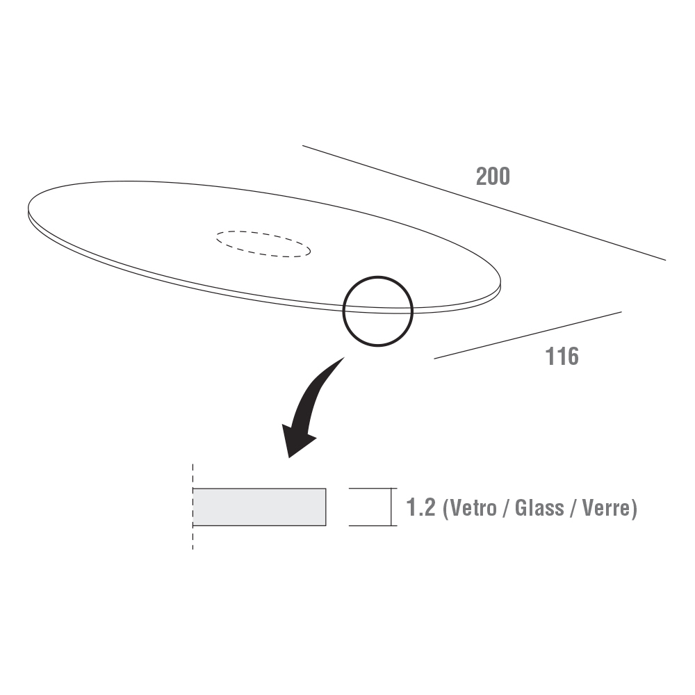 härdat glas (tjocklek 12 mm) blank transparent finish med limmad stålfläns och bas i