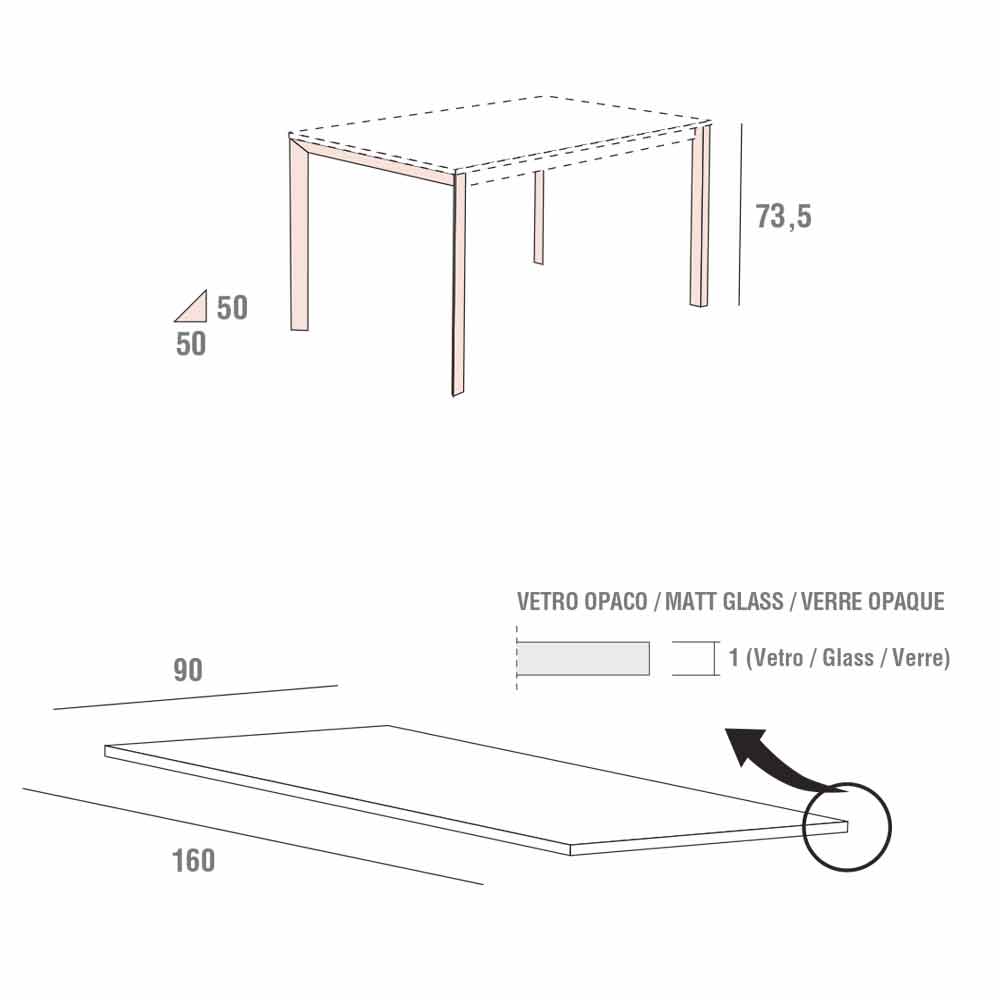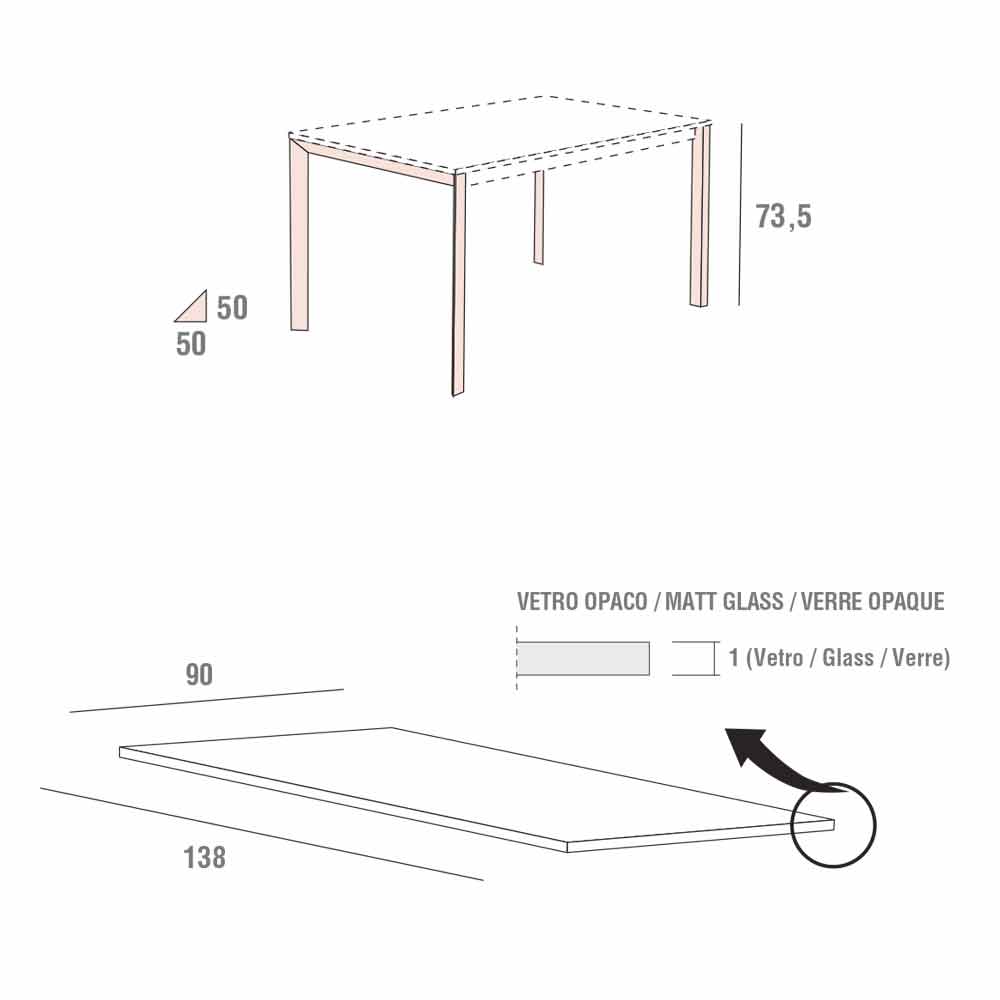 Matbord i ogenomskinligt glas med metallstruktur Tillverkat i Italien.