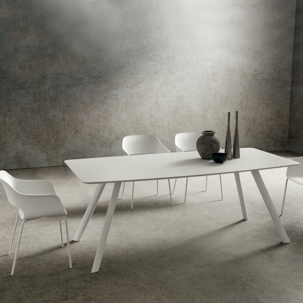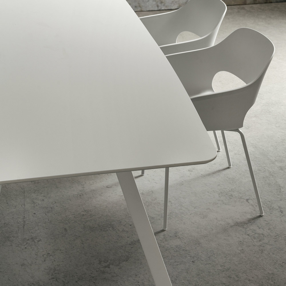 motståndskraftig, behaglig att ta på och extremt ogenomskinlig yta, egenskaper som, förutom att öka den funktionella sidan av bordet, understryker och kompletterar dess raffinerade estetik som ger en
