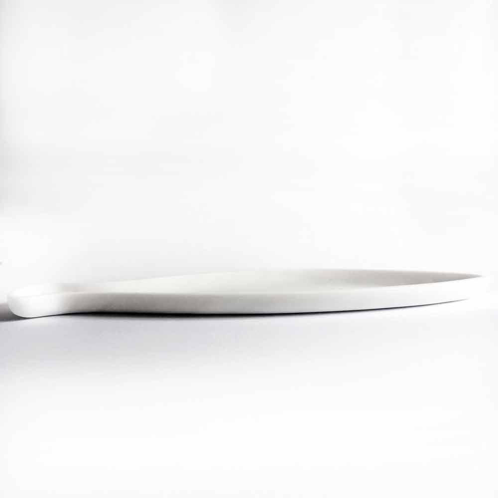Elegant och exklusiv formad köksbricka handgjord i Italien i vit Carrara-marmor . En idé om klass med en originalform som berikar varje matbord på ett raffinerat och raffinerat sätt. Idealisk för att servera alla kurser under luncher och middagar med vänner, dess form gör det också perfekt som en praktisk ficktömning som ska placeras vid ingången eller som ett enkelt dekorativt element som kan berika varje utrymme i huset med personlighet.
