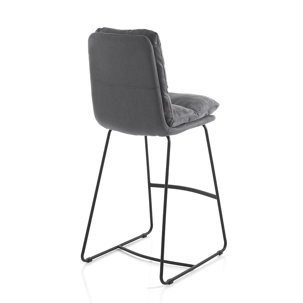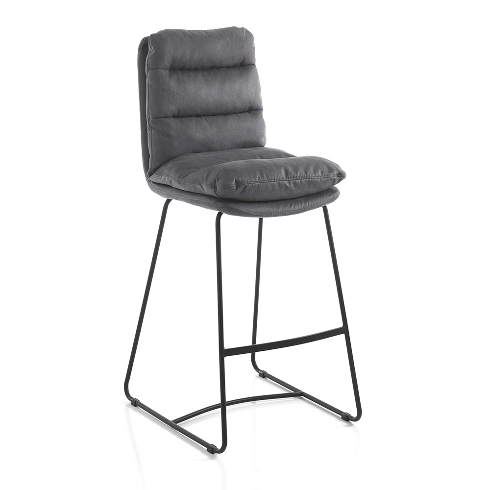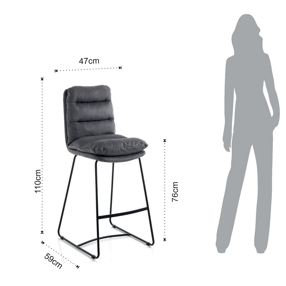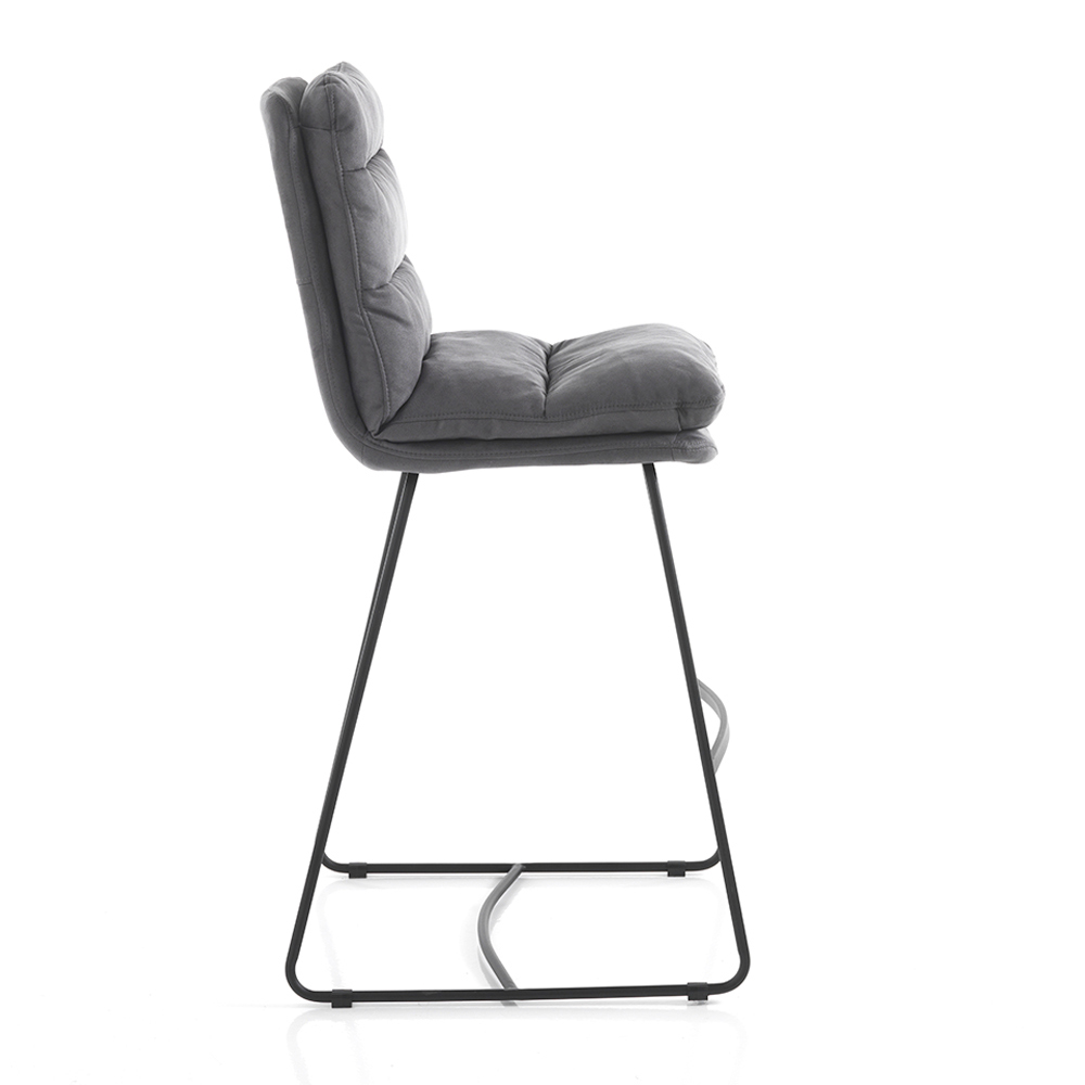 Hög kökspall med slädestruktur av mattsvartlackerat stål komplett med praktiskt fotstöd och vadderad sits klädd i mjuk mikrofibergrå sammetseffekt . En produkt vars estetik präglas av enkla linjer och former berikad av den eleganta quiltningen som täcker hela sitsen, vilket ger ännu mer en härlig känsla av komfort. Idealisk att placeras i matsalen och köket men även i kontraktsutrymmen som barer och restauranger tack vare den eleganta och raffinerade designen och dess mångsidiga användning.