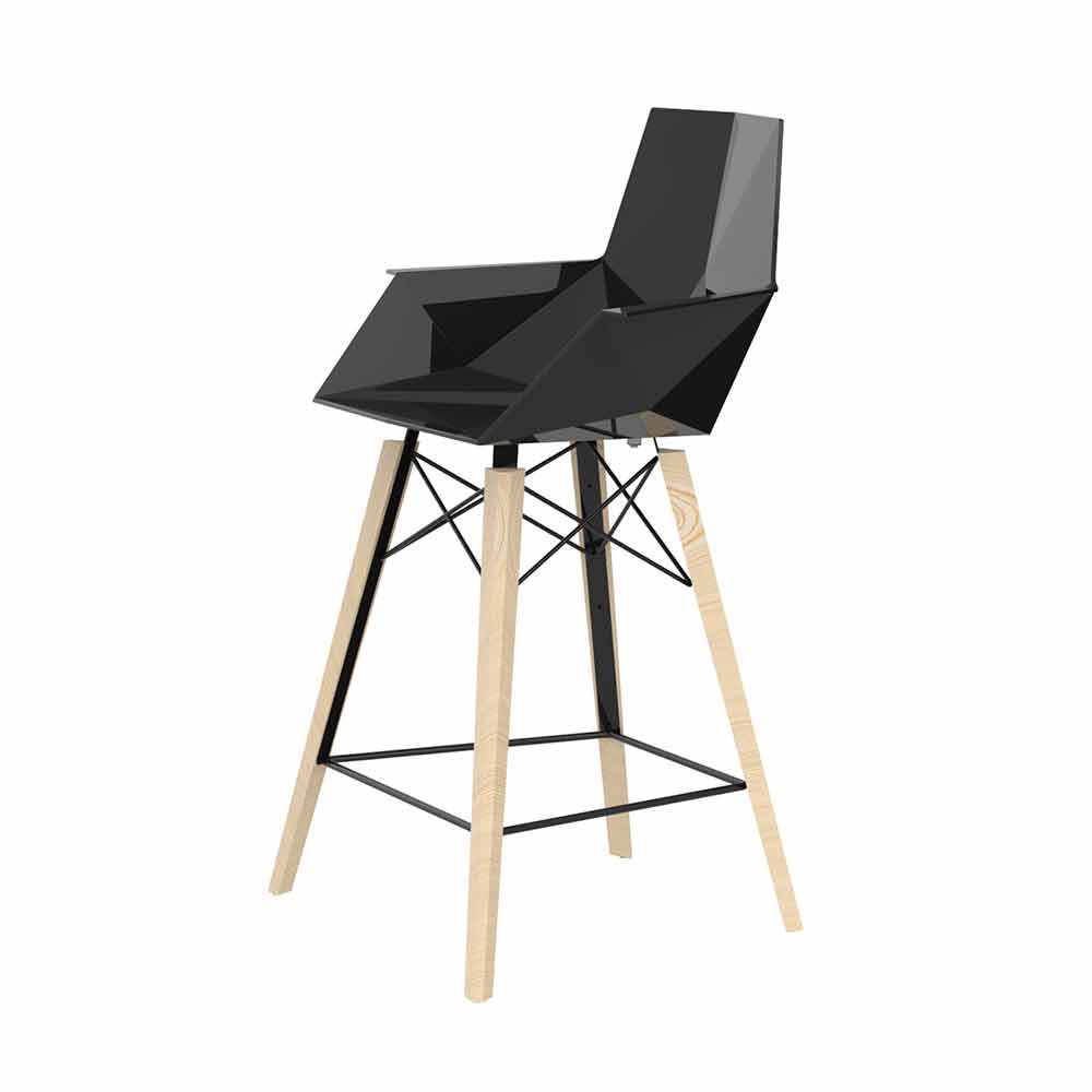 Kökspall med struktur i ask och sits och ryggstöd och armstöd i polypropen i olika färger.