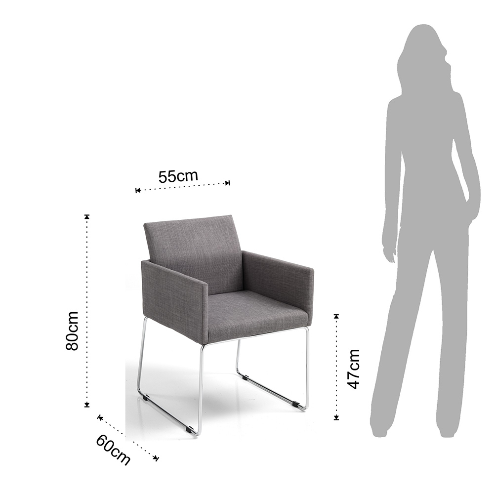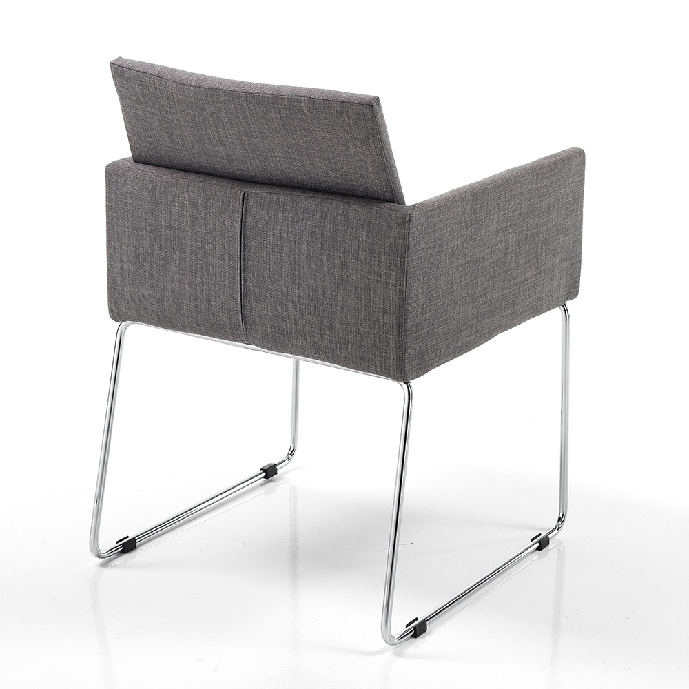 Köksstol med ram i kromad metall och sits helt klädd i grått tyg utrustad med praktiska och bekväma armstöd . Idealisk att placeras i matsalen och köket men också i ett arbetsrum eller kontor tack vare den eleganta och raffinerade designen och dess mångsidighet. Formerna som markerar figuren erbjuder en särskilt välkomnande och bekväm sits för att säkerställa underbara stunder dedikerade till avkoppling.