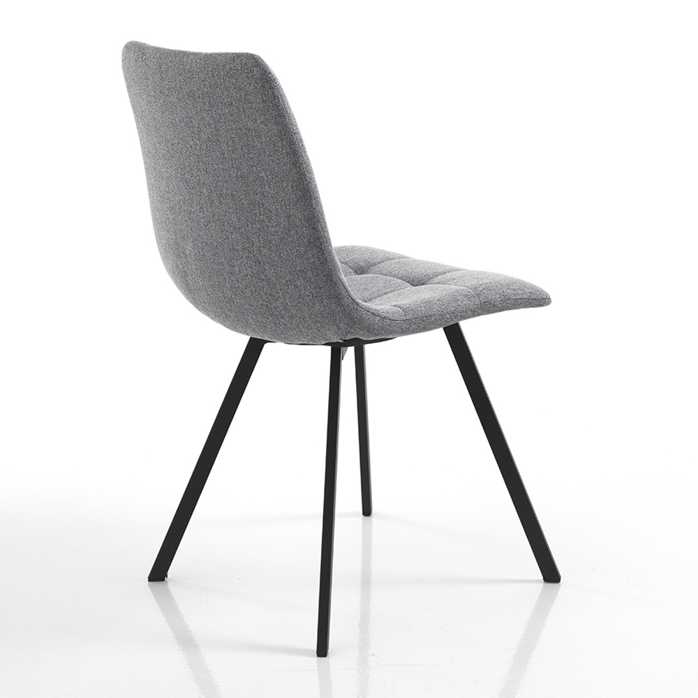Köksstol med struktur av mattsvart lackerat stål och sits helt klädd i grått tyg . Idealisk att placeras i matsalen och köket men också i kontraktsutrymmen som barer och restauranger tack vare den eleganta och raffinerade designen och dess mångsidighet. Formerna som markerar figuren tillsammans med den mjuka stoppningen erbjuder en särskilt välkomnande och bekväm sits för att säkerställa underbara stunder dedikerade till avkoppling.