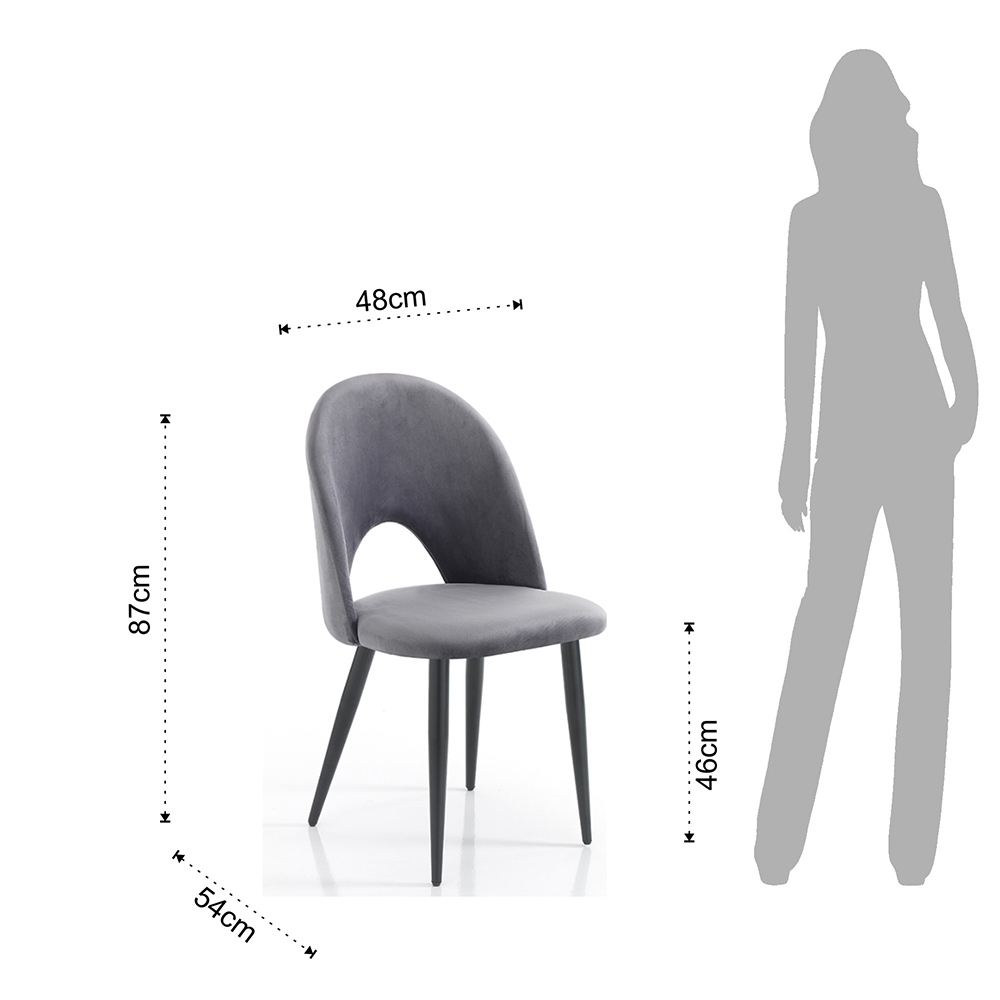 Köksstol i sammetseffektstyg och lackerad metall, 4 st.