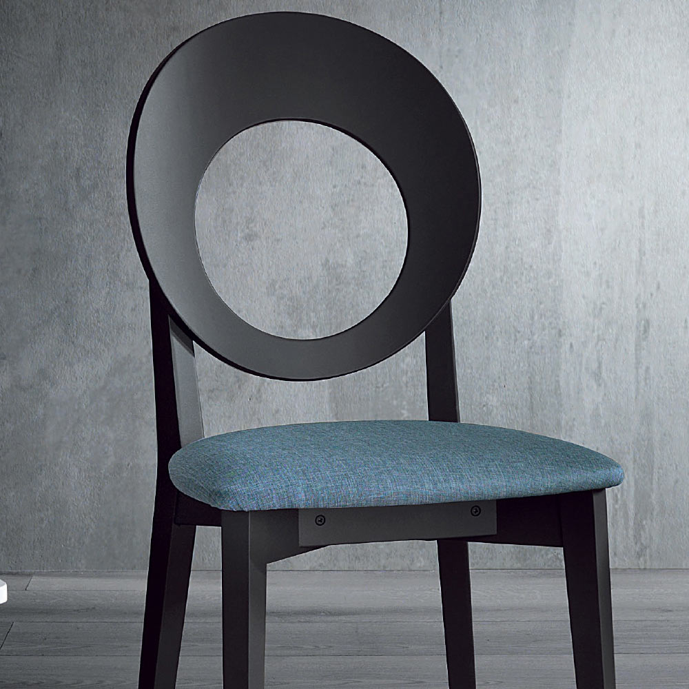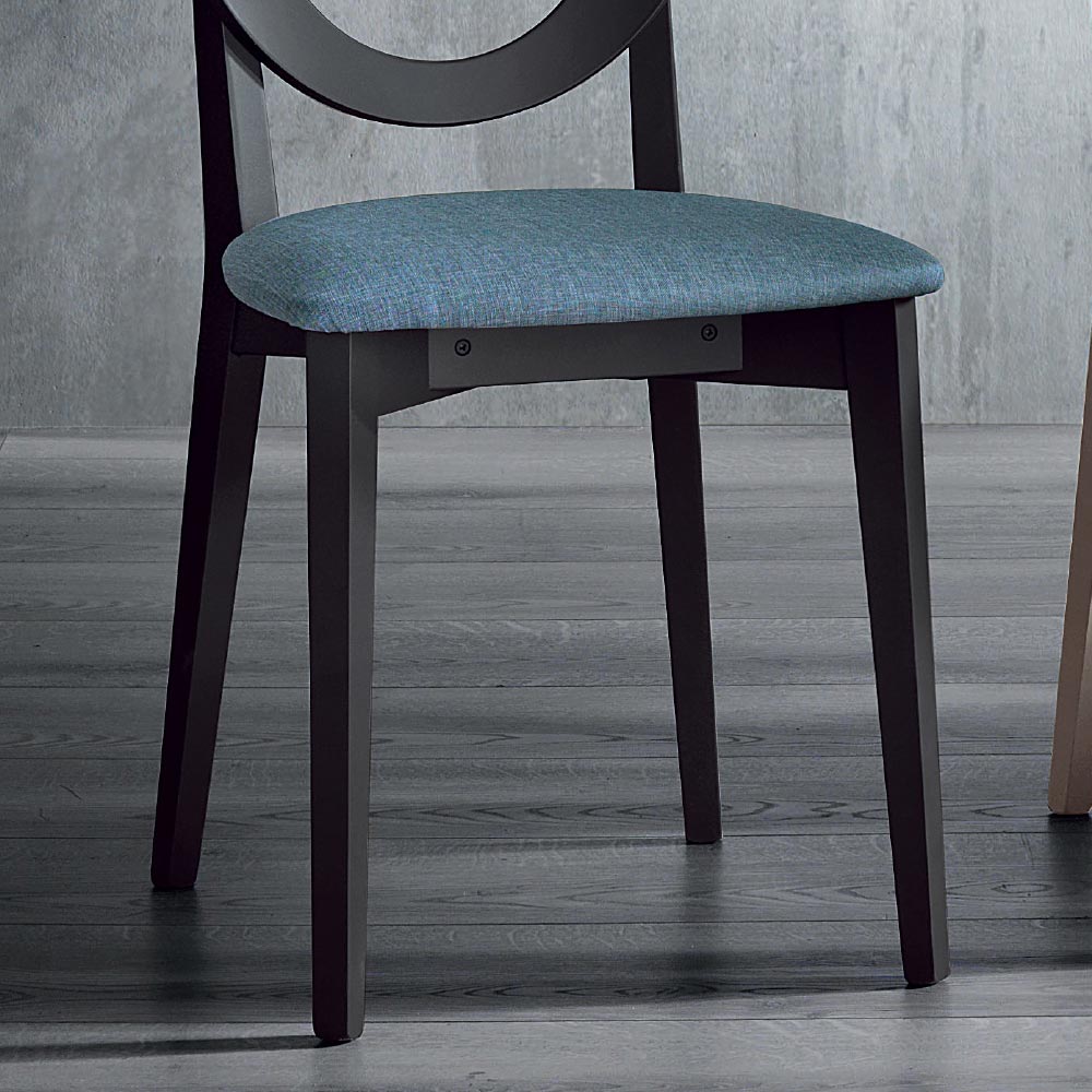 Modern köksstol i trä i olika ytskikt och tyg, tillverkad i Italien.