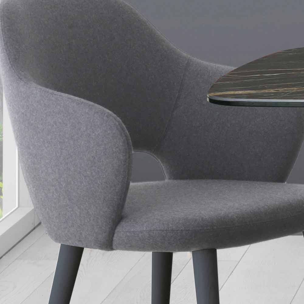 Köksstol tillverkad i Italien med stålkroppsstruktur, gjuten i kallskummad polyuretan täckt i tyg och träbas med matt askfinish. En estetik med uppmärksamhet på detaljer som anpassar sig till alla moderna stilistiska situationer och berikar utseendet med en exklusiv och raffinerad touch samtidigt som den garanterar en välkomnande plats . En idé om moderna och mångsidiga möbler som kommer från önskan att skapa en produkt som kan öka glädjen att vara värd och dela sin tid tack vare en bekväm och omslutande design .